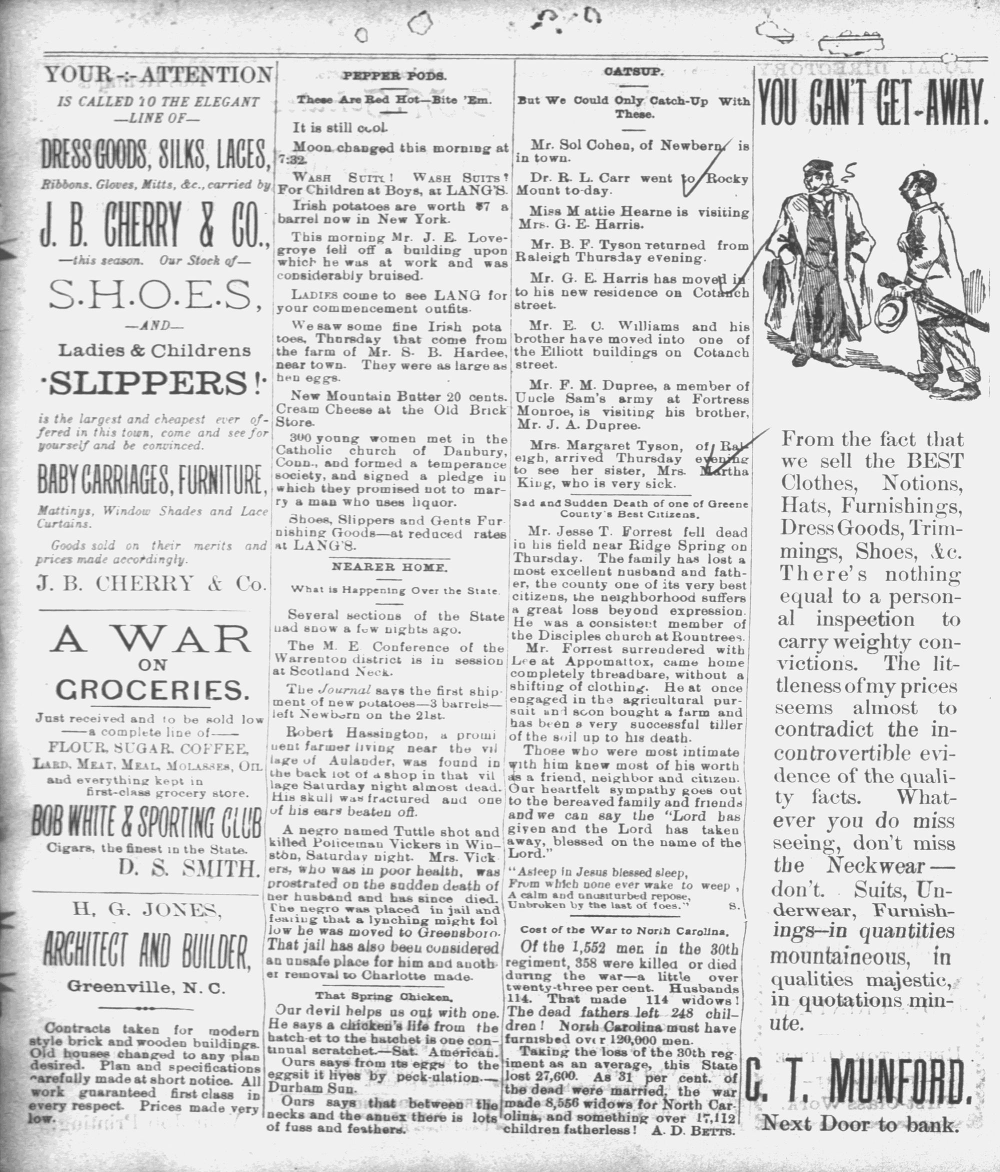 Oars says that between� tlie} made 8,556 widows for North Car-