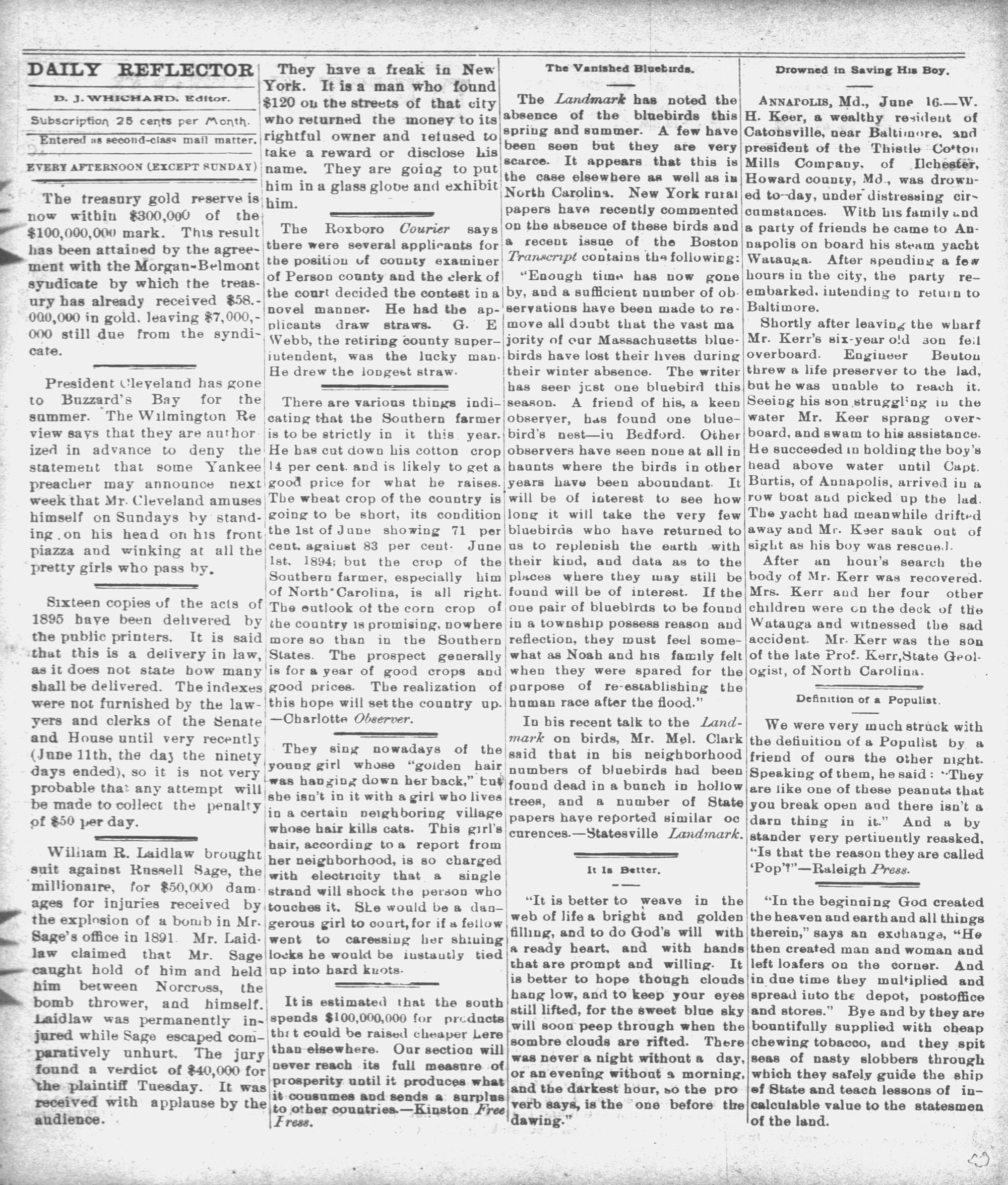 after it is trausplanted. Just at N. C., was in the city yesterday; oWhile 1 have uo political feel-