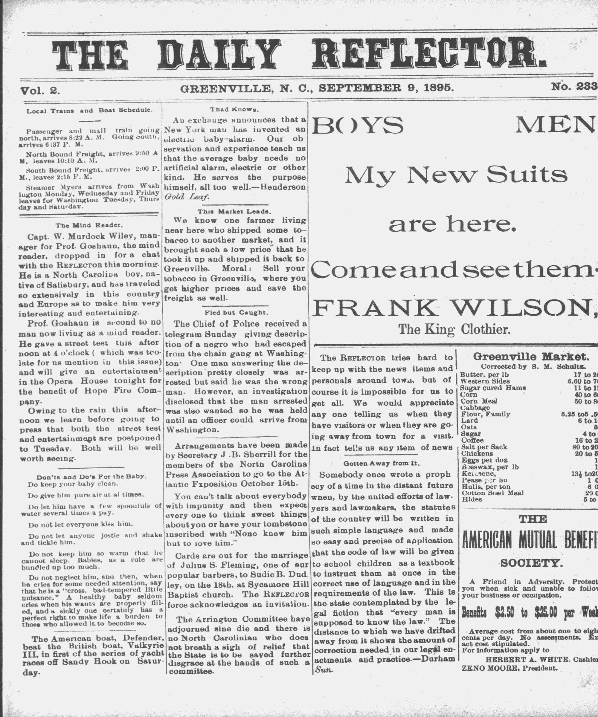 Vol. 2. GREENVILLE, N. C., SEPTEMBER 9, 1895.