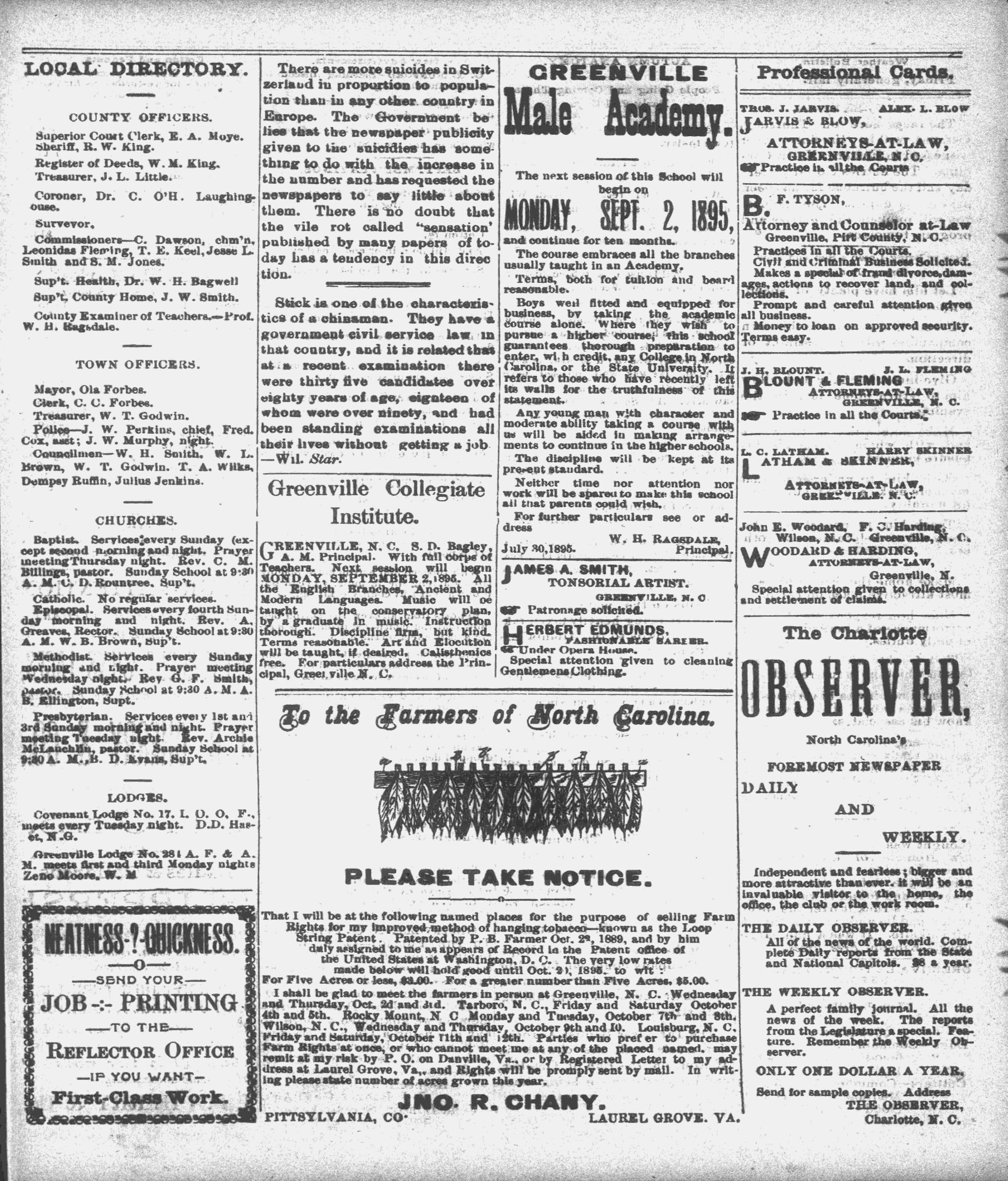 GREENVILLE, N. C., SEPTEMBER 26, 1895.