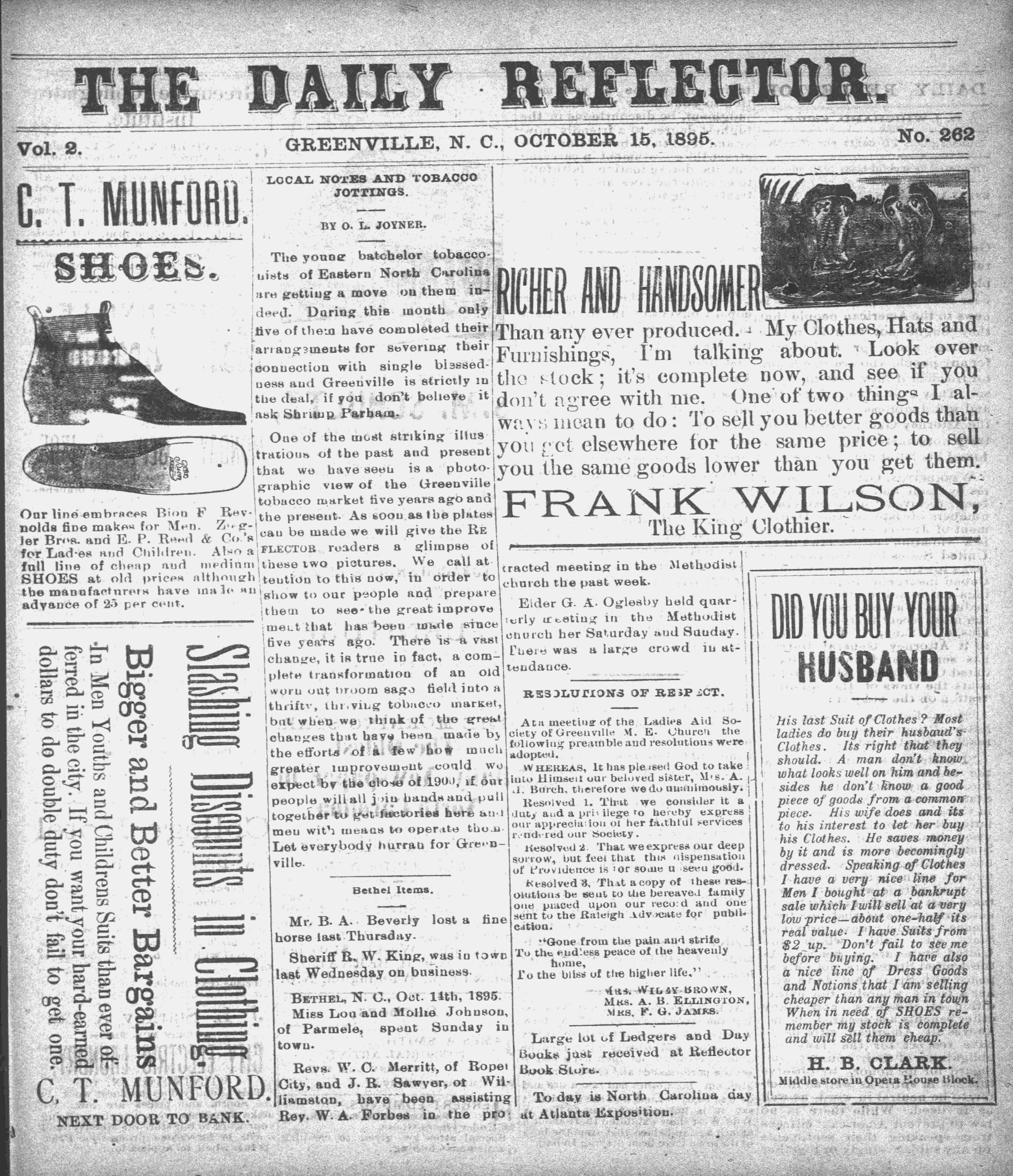 Go =~ = ge po tare ae BETHEL, N.C., Oct. 14th, 1895.