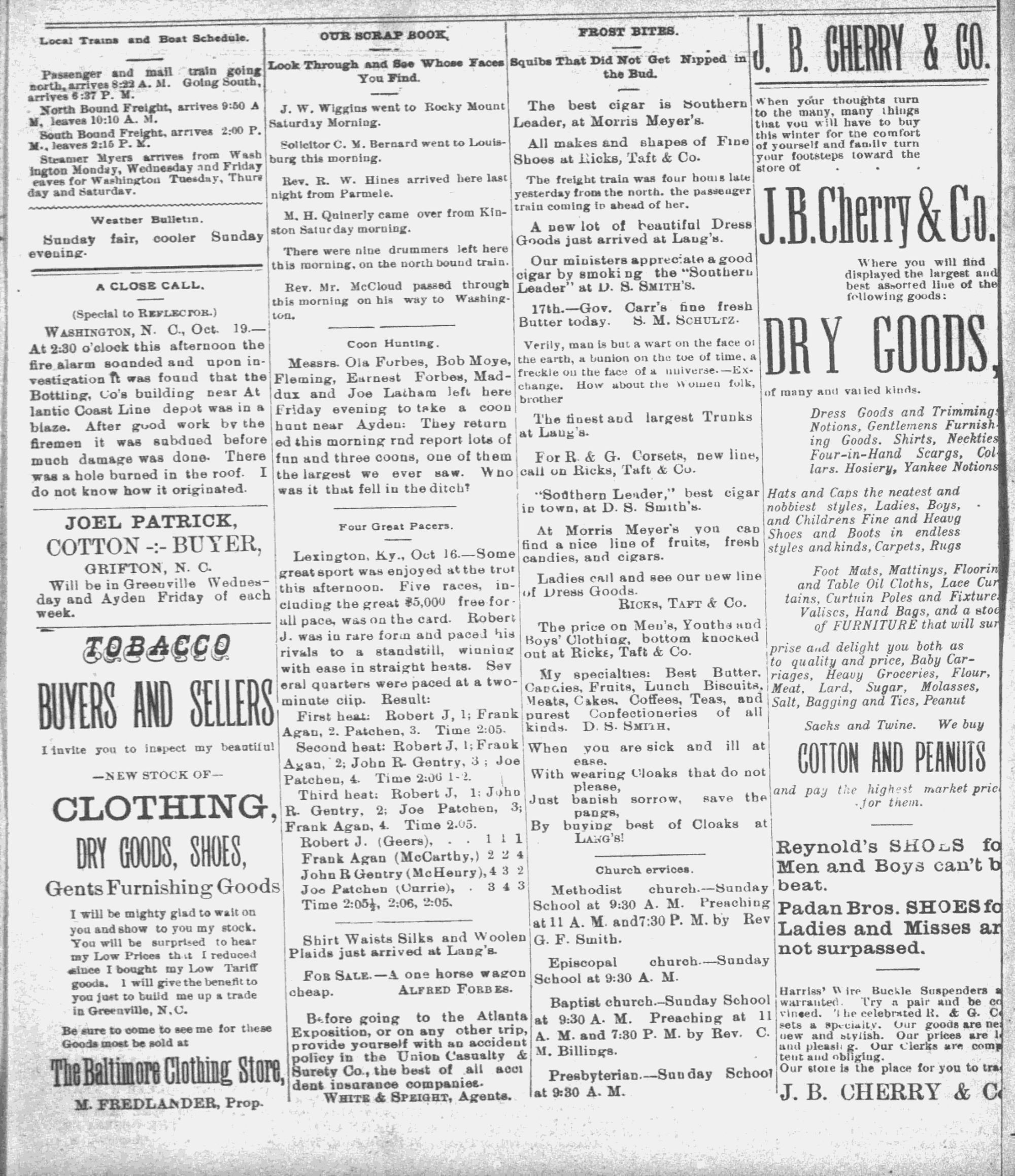 M. FREDLANDER, Prop. Ware & Srzicut, Agents. ~at 930 A. M- J.B. CHERRY & Ce¢