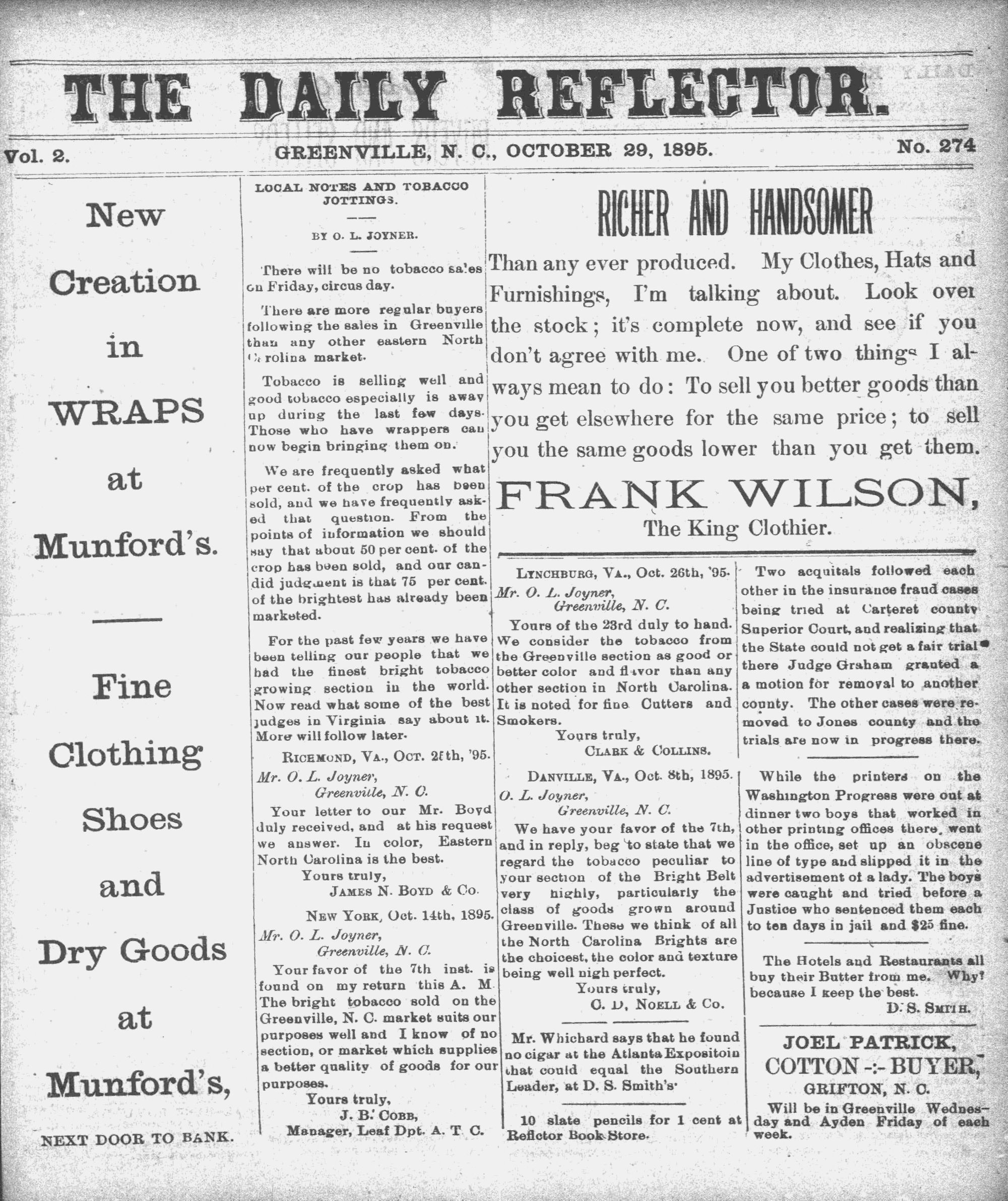 GREENVILLE, N. C., OCTOBER 29, (1895.