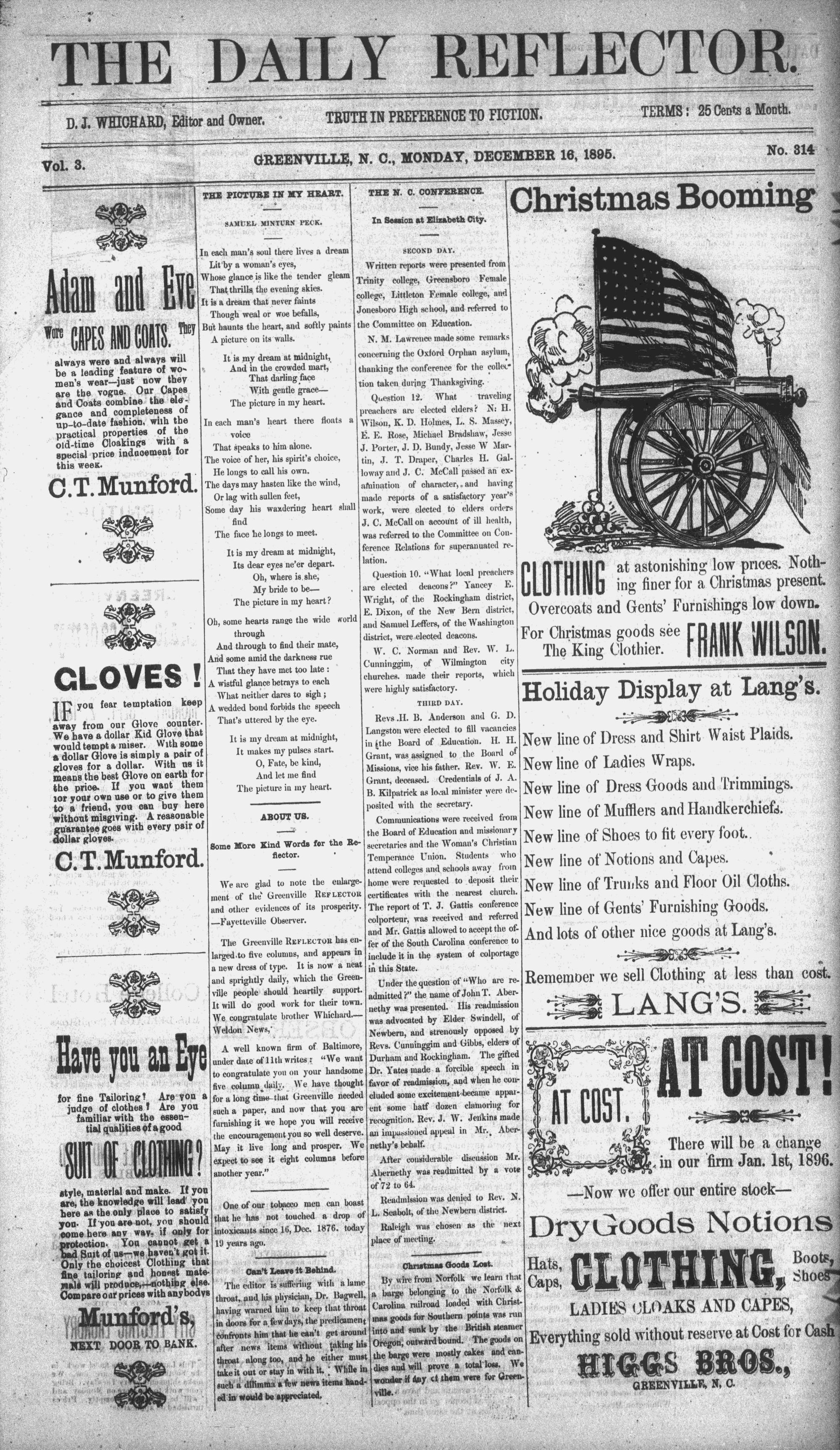 oGREENVILLE, N. 0. MONDAY, DECEMBER 16, 1895.