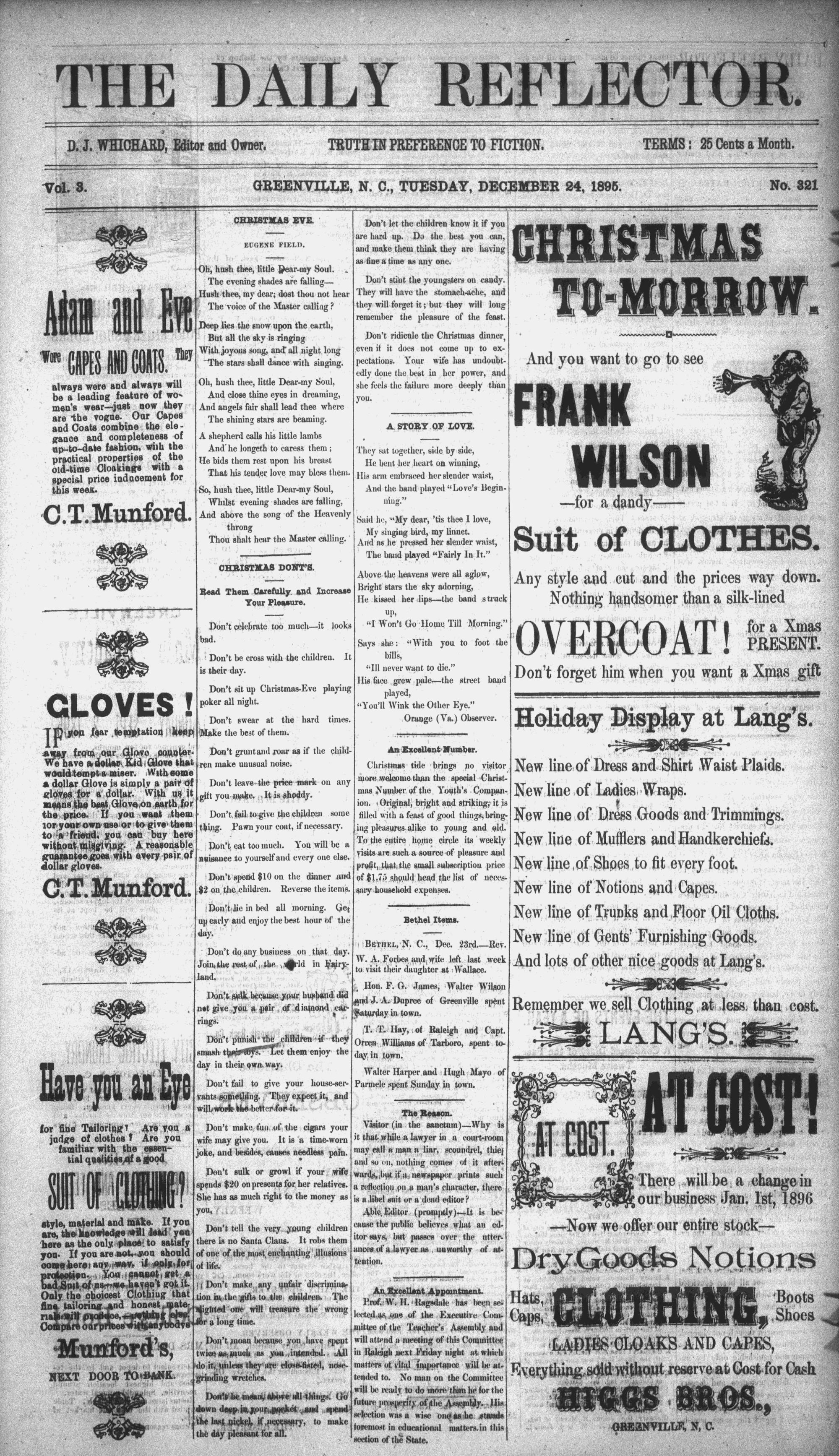 GREENVILLE, N. C., TUESDAY, DECEMBER 24, 1895.