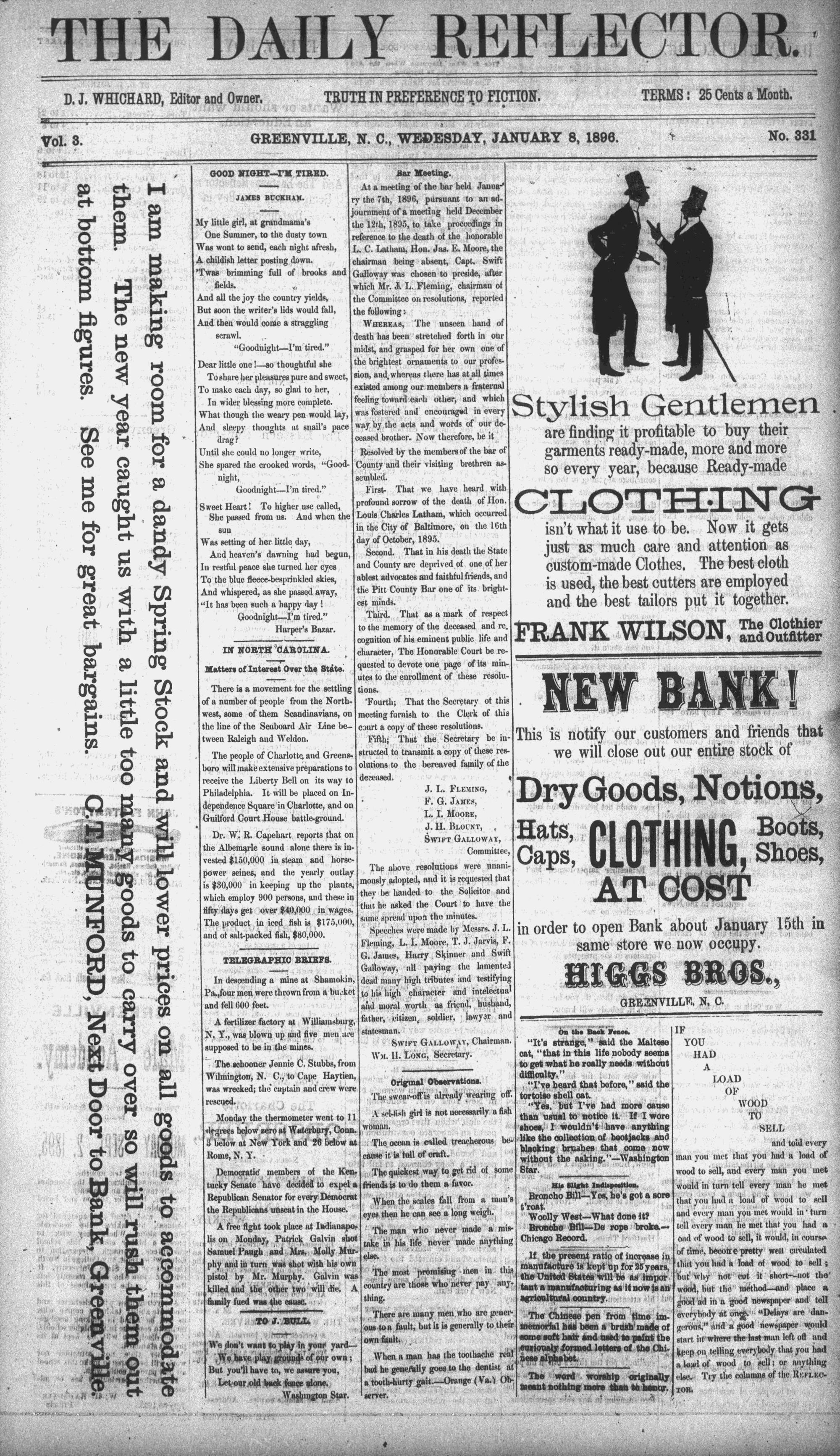 GREENVILLE, N. C., WEDESDAY, JANUARY 8, 1896.