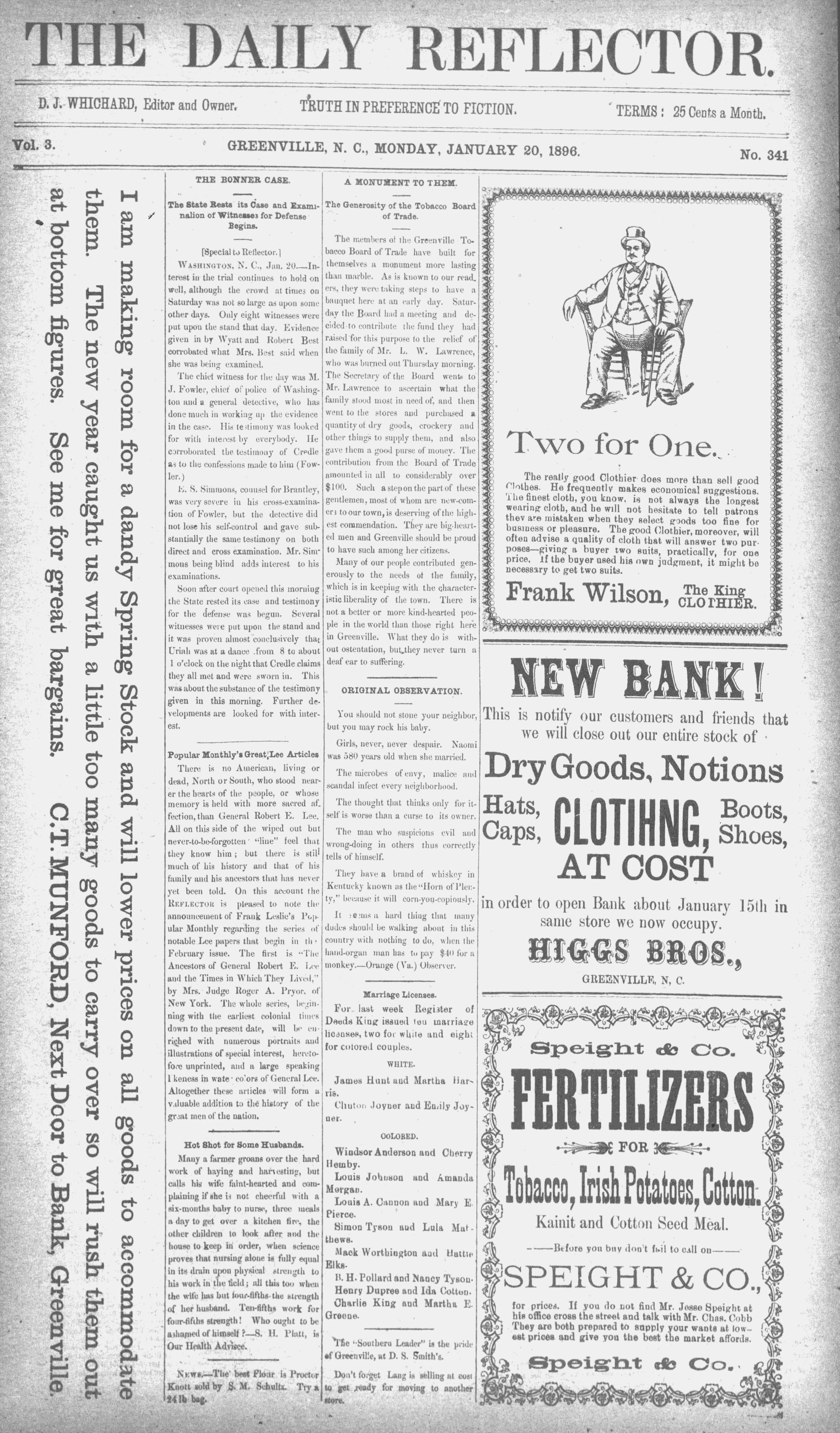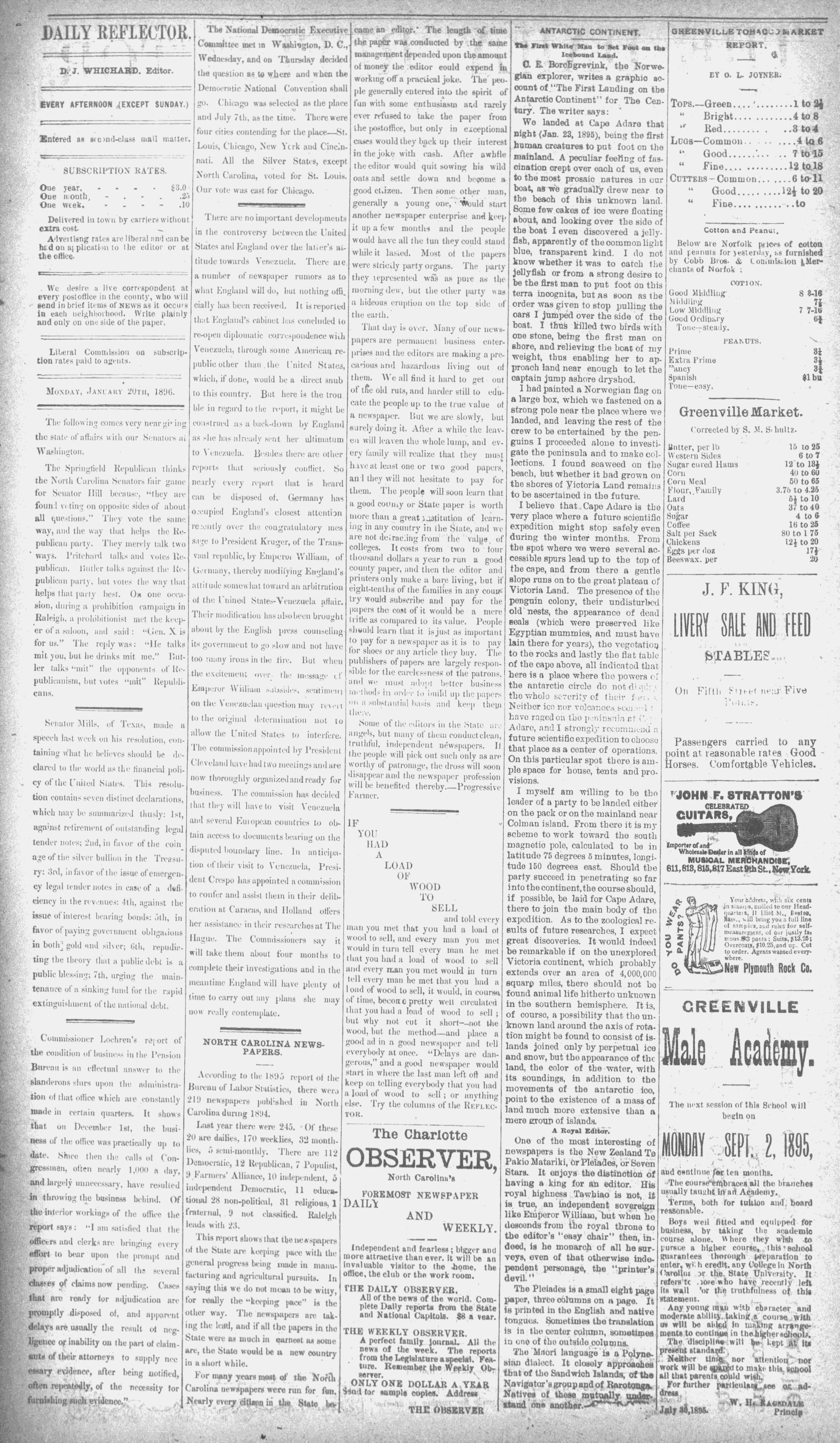 ~ GREENVILLE, N. C., MONDAY, JANUARY 20, 1896. -