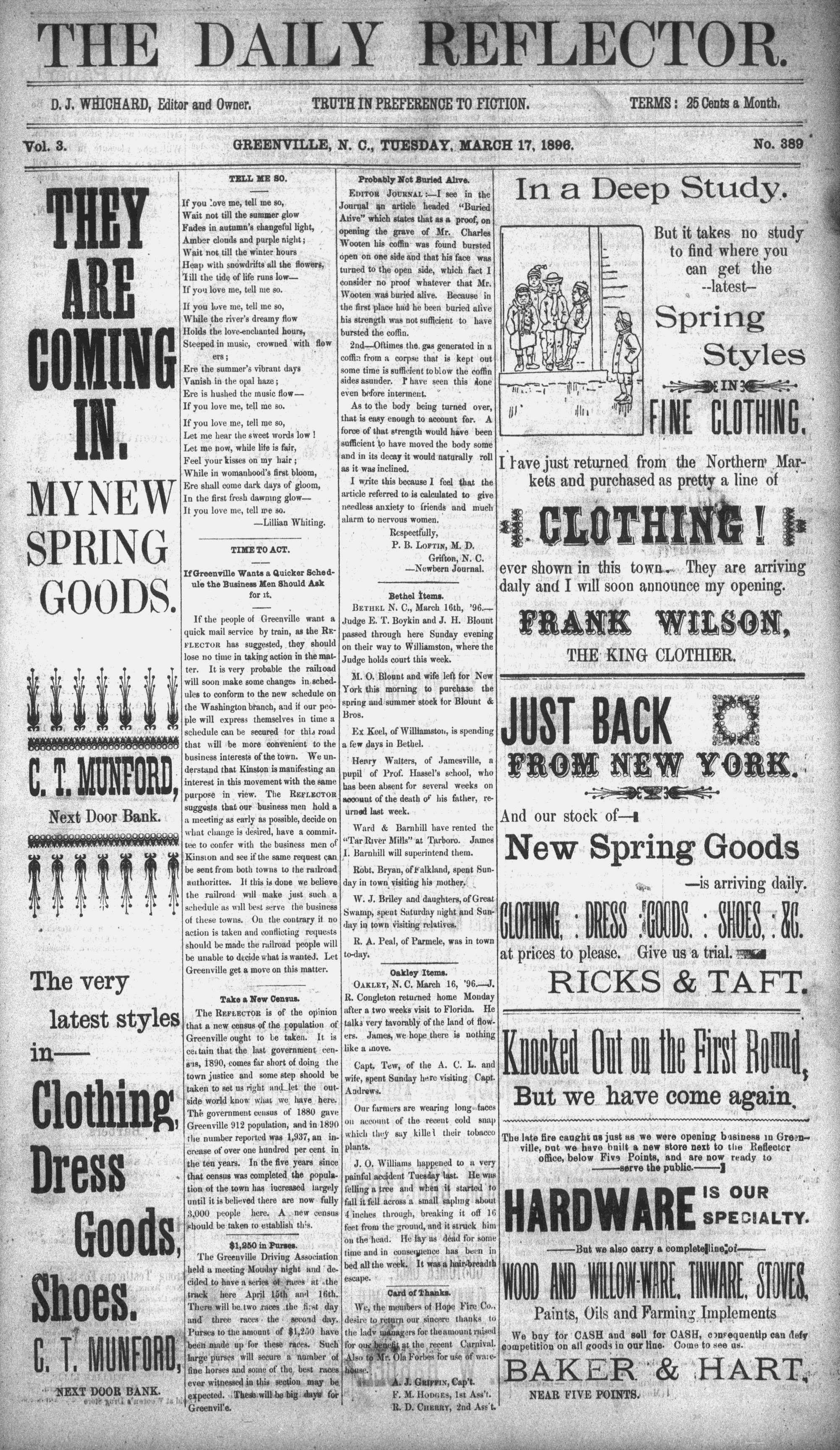 GREENVILLE, N. C., TUESDAY, MARCH 17, 1896.