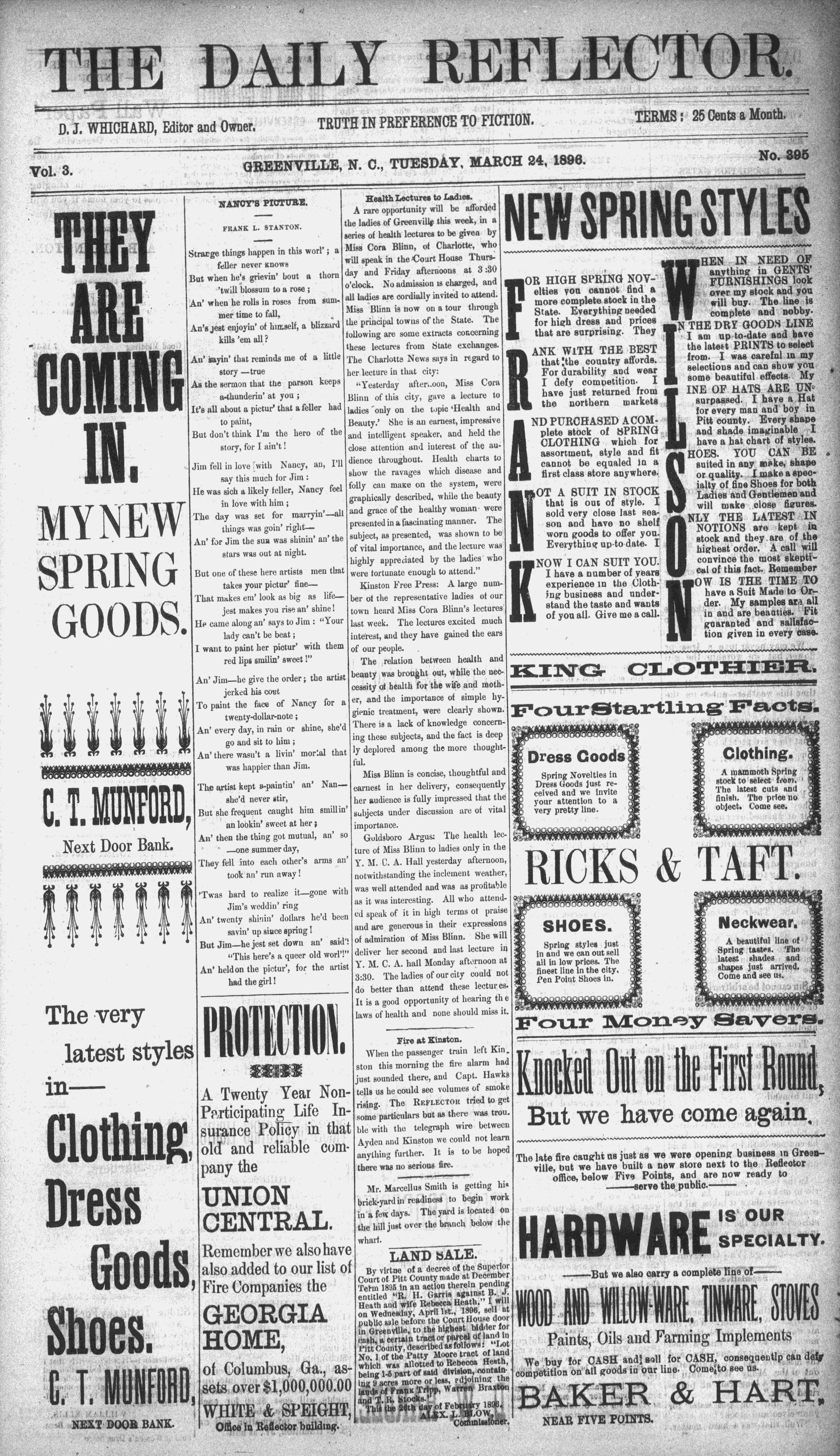 GREENVILLE, N. C., TUESDAY, MARCH 24, 1896.