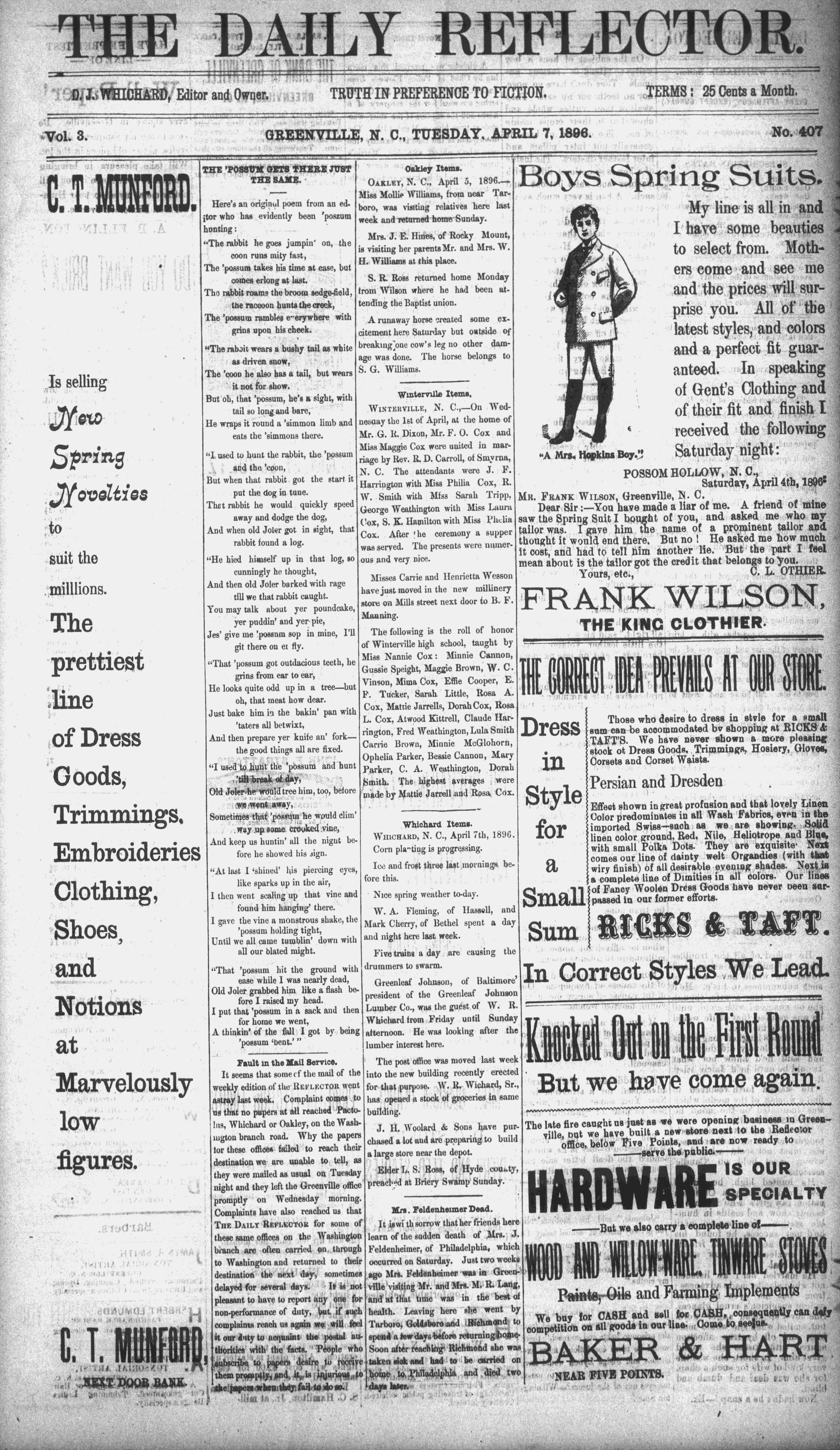 THE SAME. Oaxuty, N. C., April 5, 1896." Boys Spring Suits.