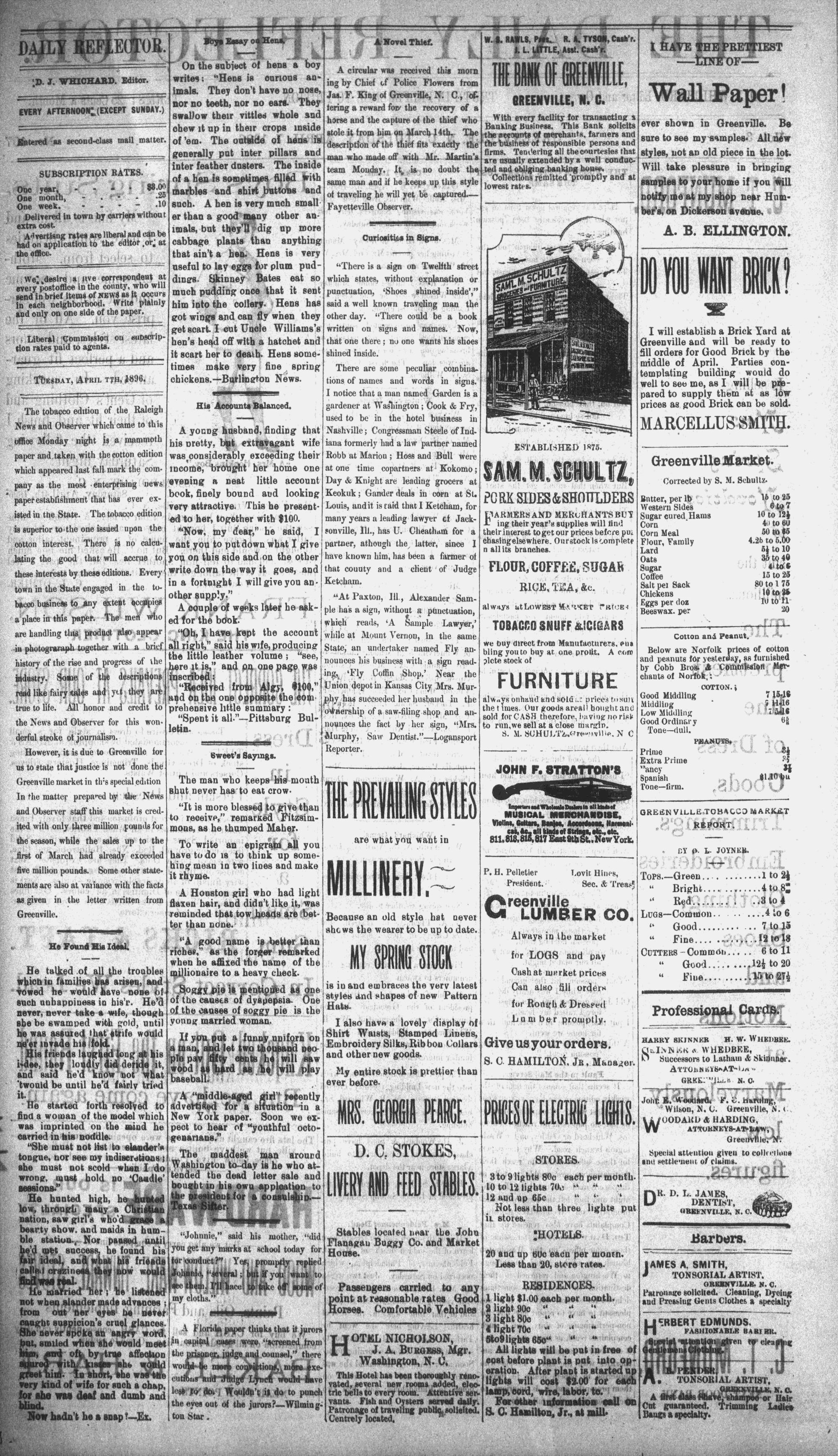 way upsome. crogked vine, Wuicuanp, N.C. April 7th, 1896 for imported Swiss"sach a8 we..are showing. Solid