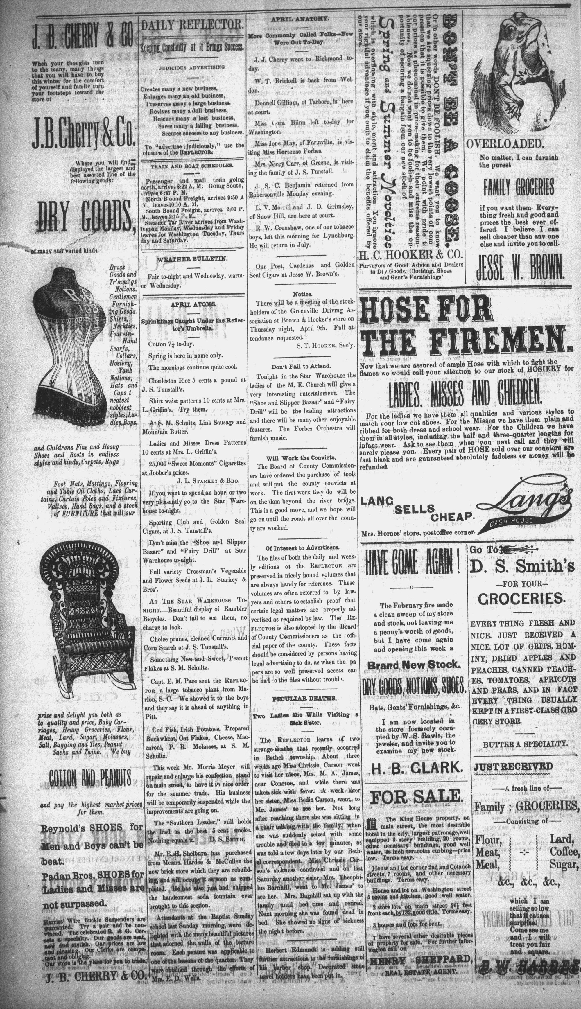 G oods I used te hiyt a ~ee and bunt Parker, C. A. Weathington, Dorah in Corsets and Corset Waists.