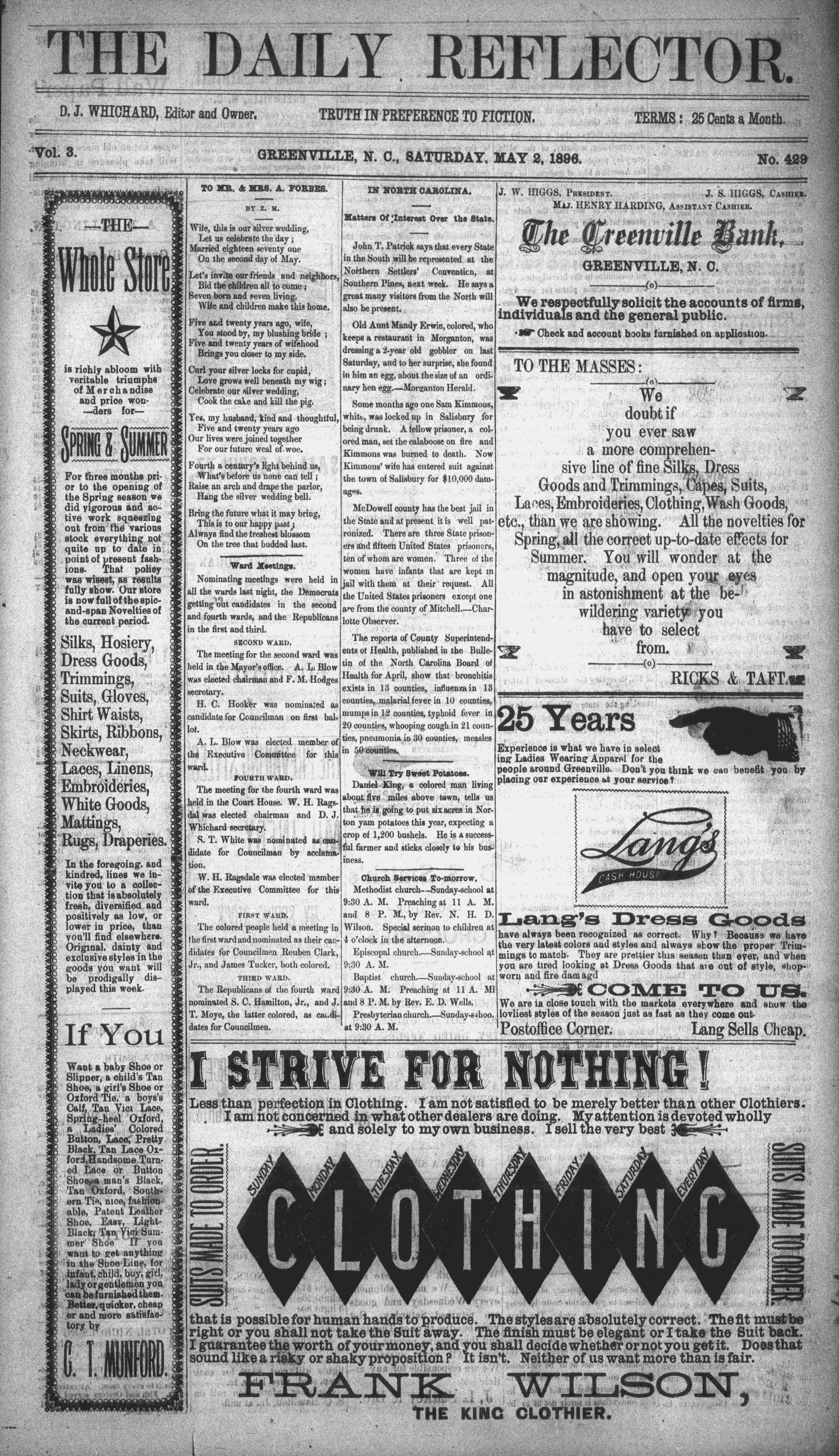 ~GREENVILLE, N. C., SATURDAY, MAY 2, 1896.