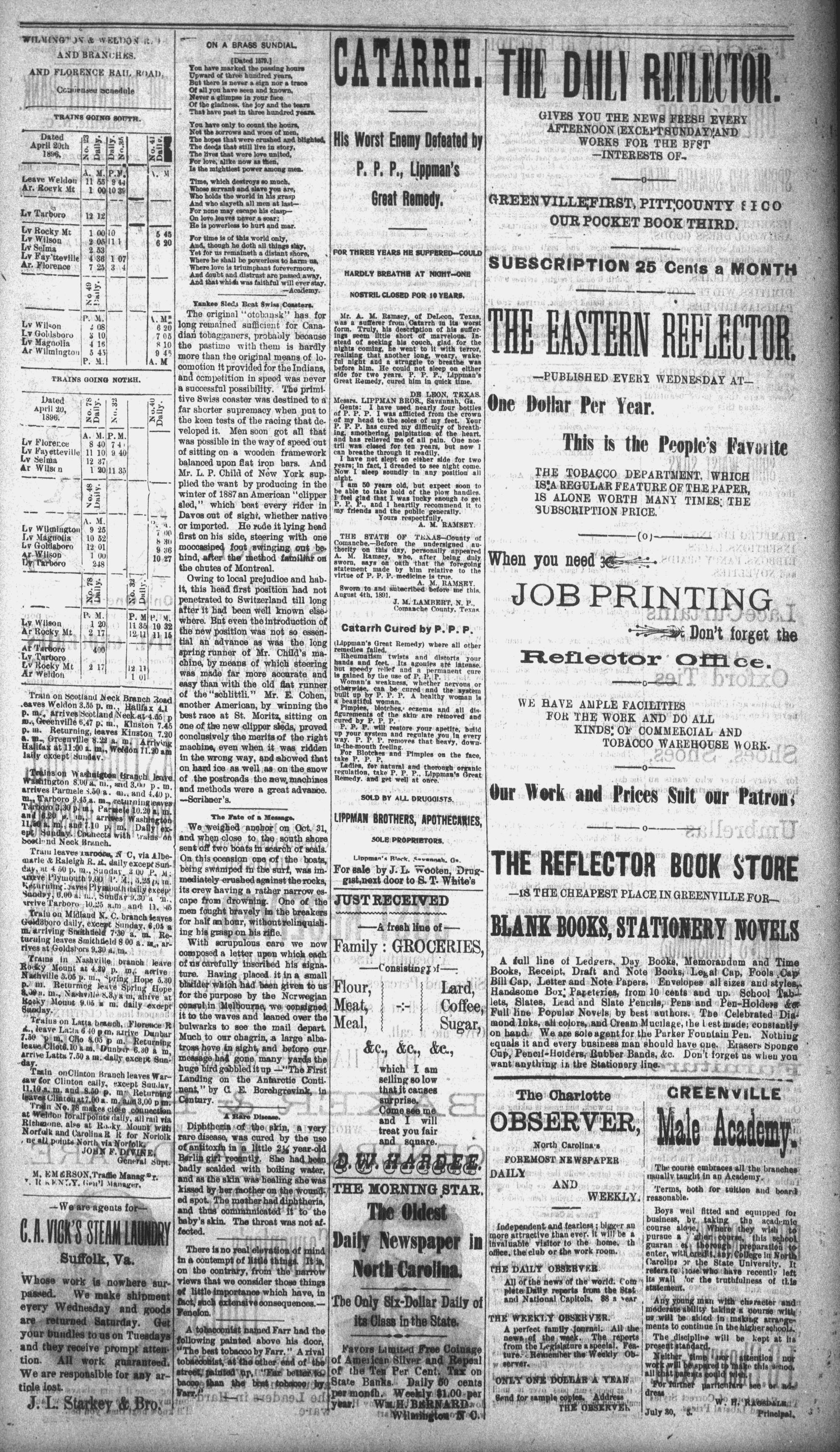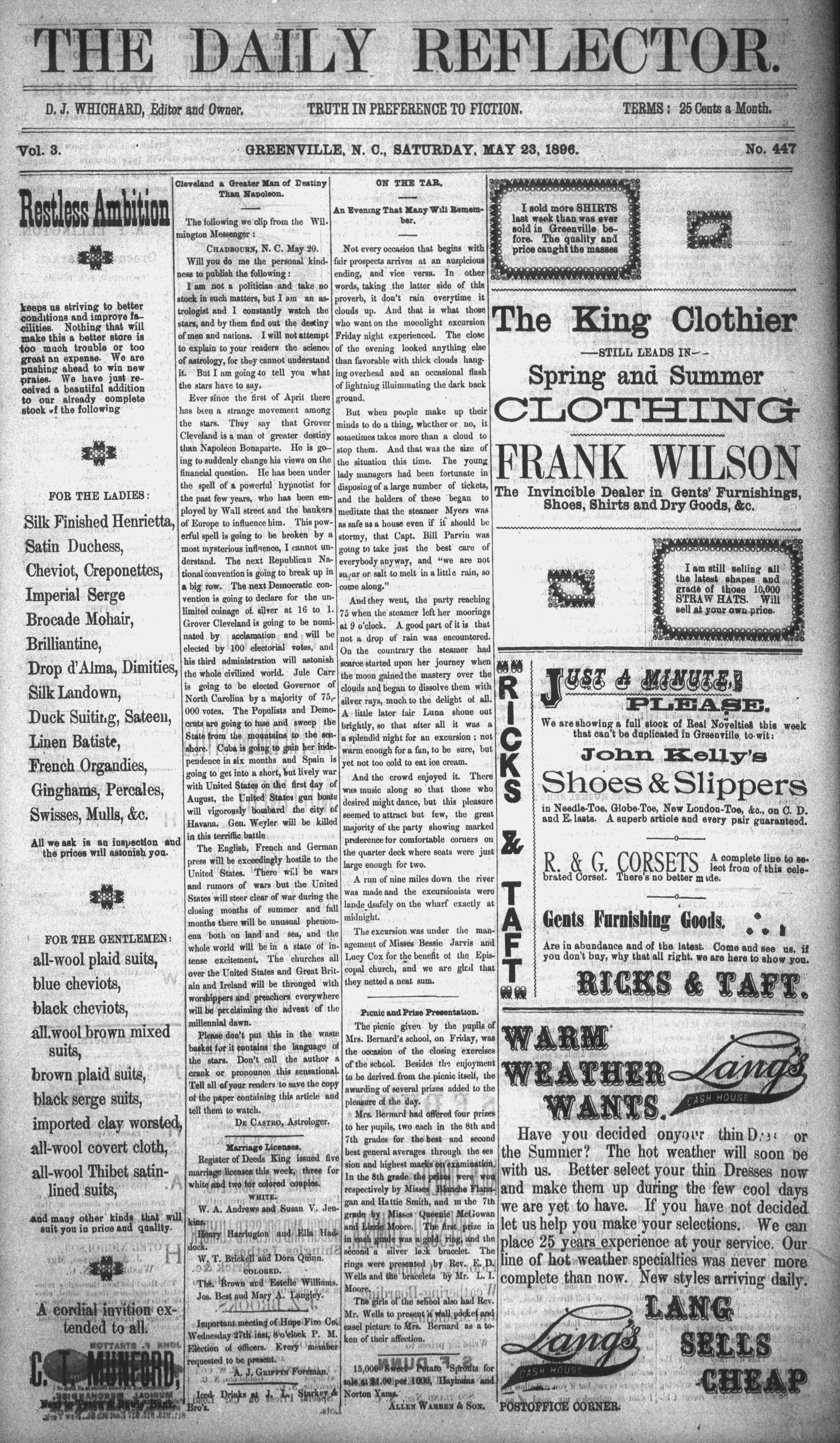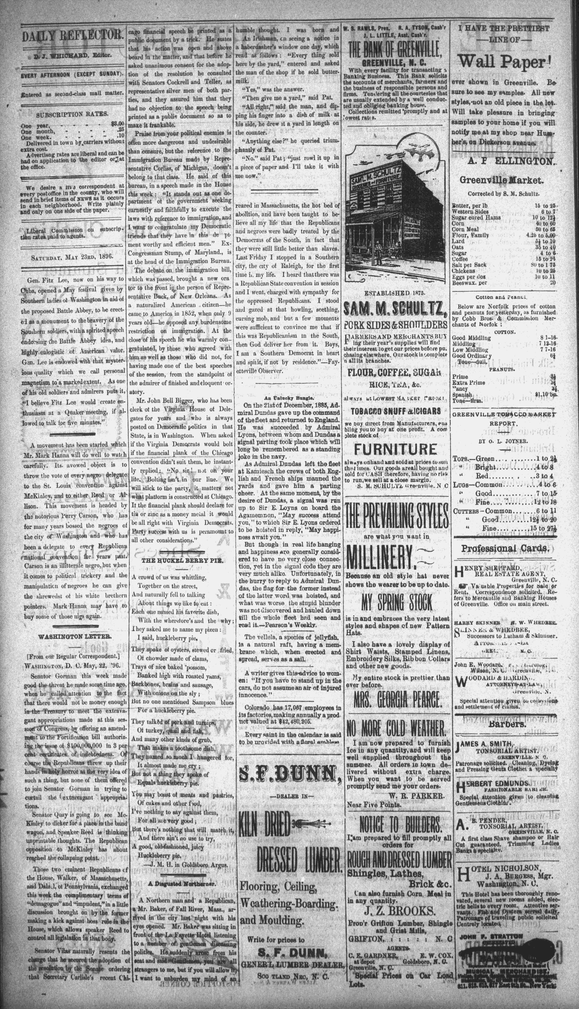 Vol. 8. } __. @REENVILLE, N. C., SATURDAY, MAY 28, 1896. oe
