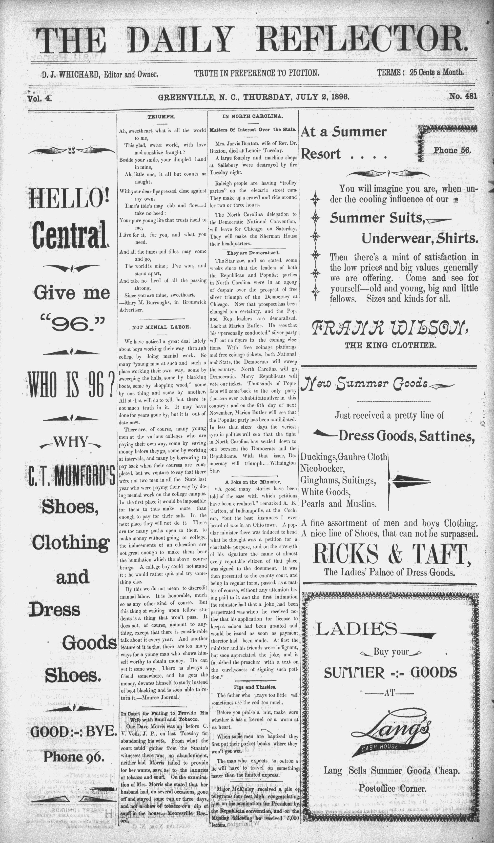 GREENVILLE, N. C., THURSDAY, JULY 2, 1896.