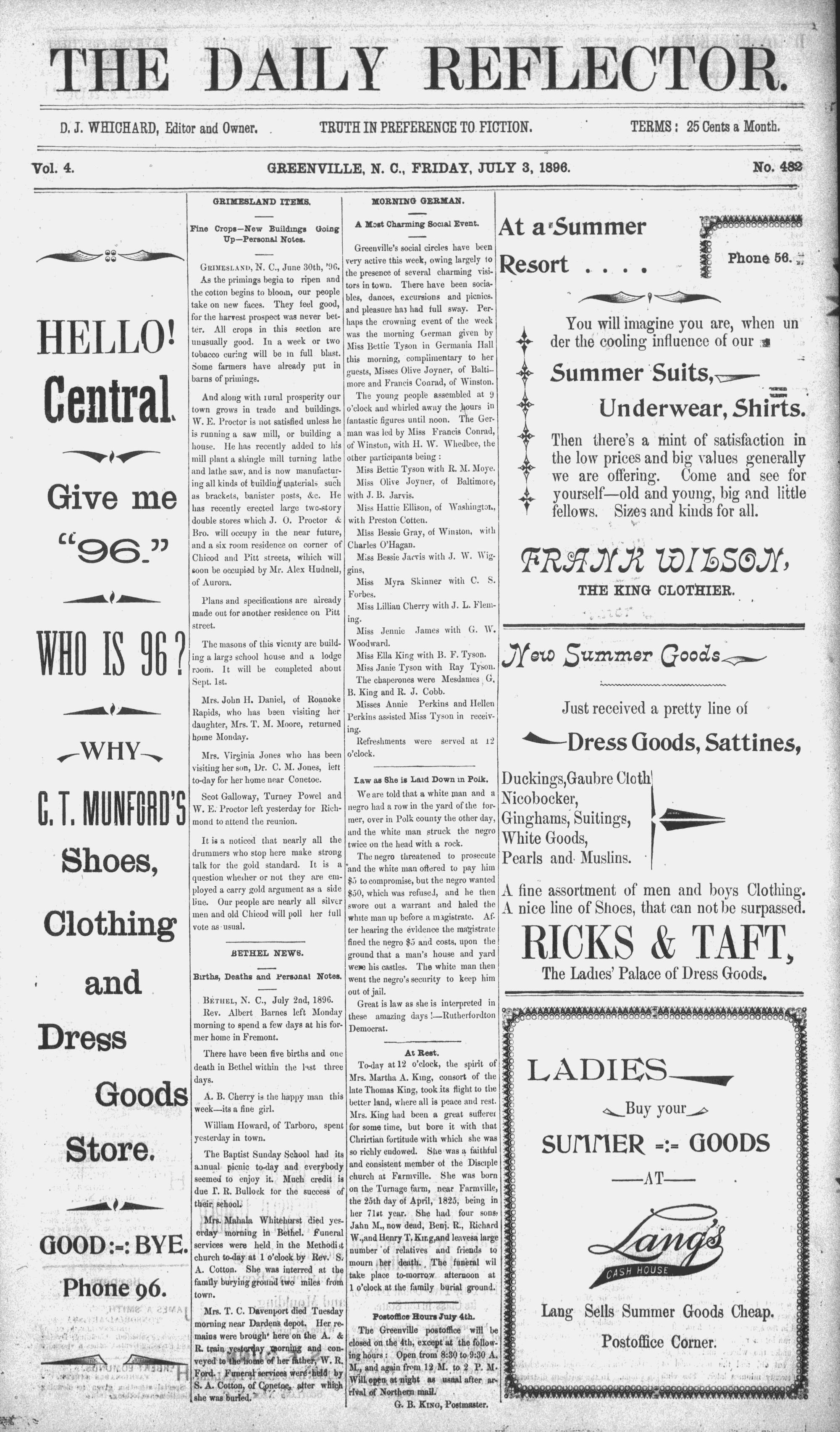 GREENVILLE, N. C., FRIDAY, JULY 3, 1896.