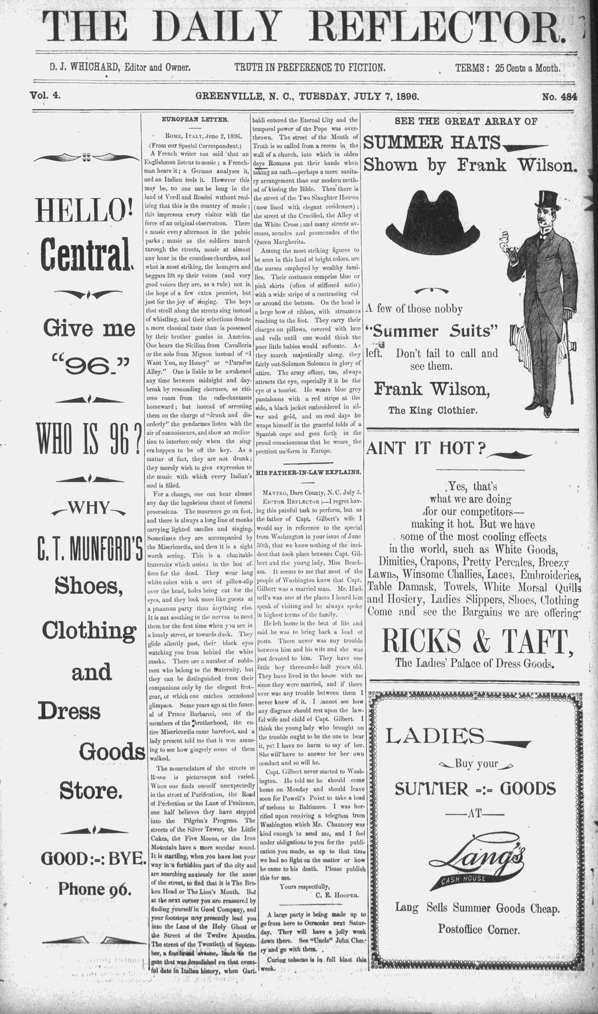 GREENVILLE, N. C., TUESDAY, JULY 7, 1896.