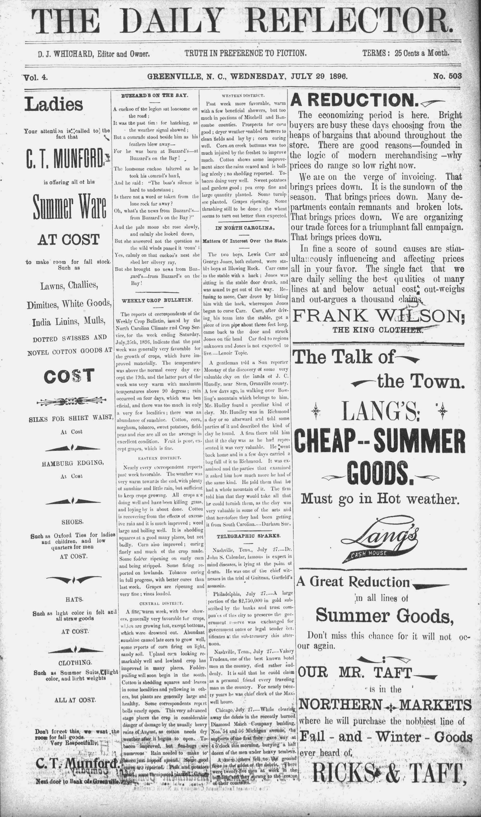 and Fur Hats, Suspenders and sig baile INE ee GREENVILLE, N. C ing for Men and Boys. Biggest