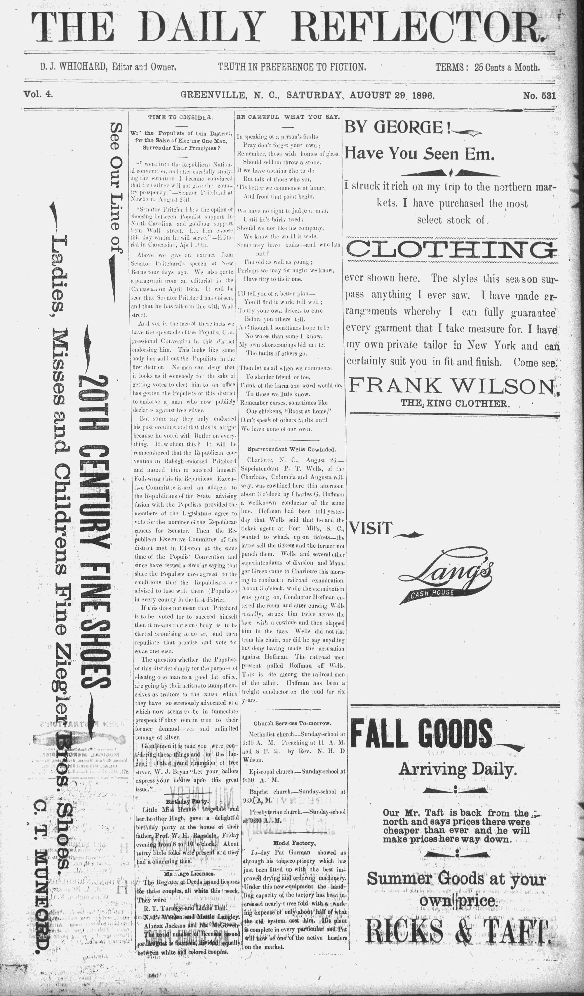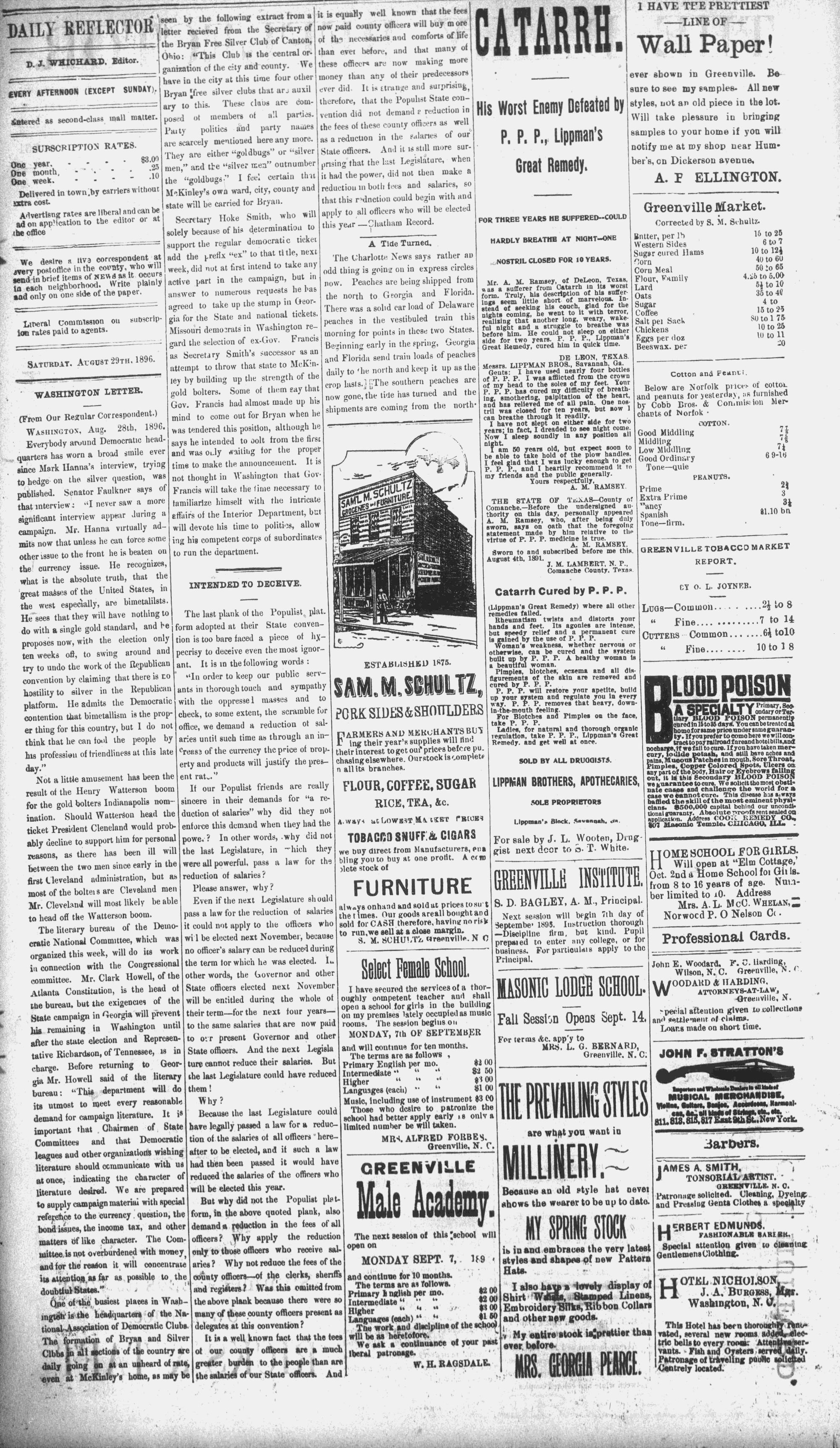 GREENVILLE, . N. C., SATURDAY, AUGUST 29, 1896.