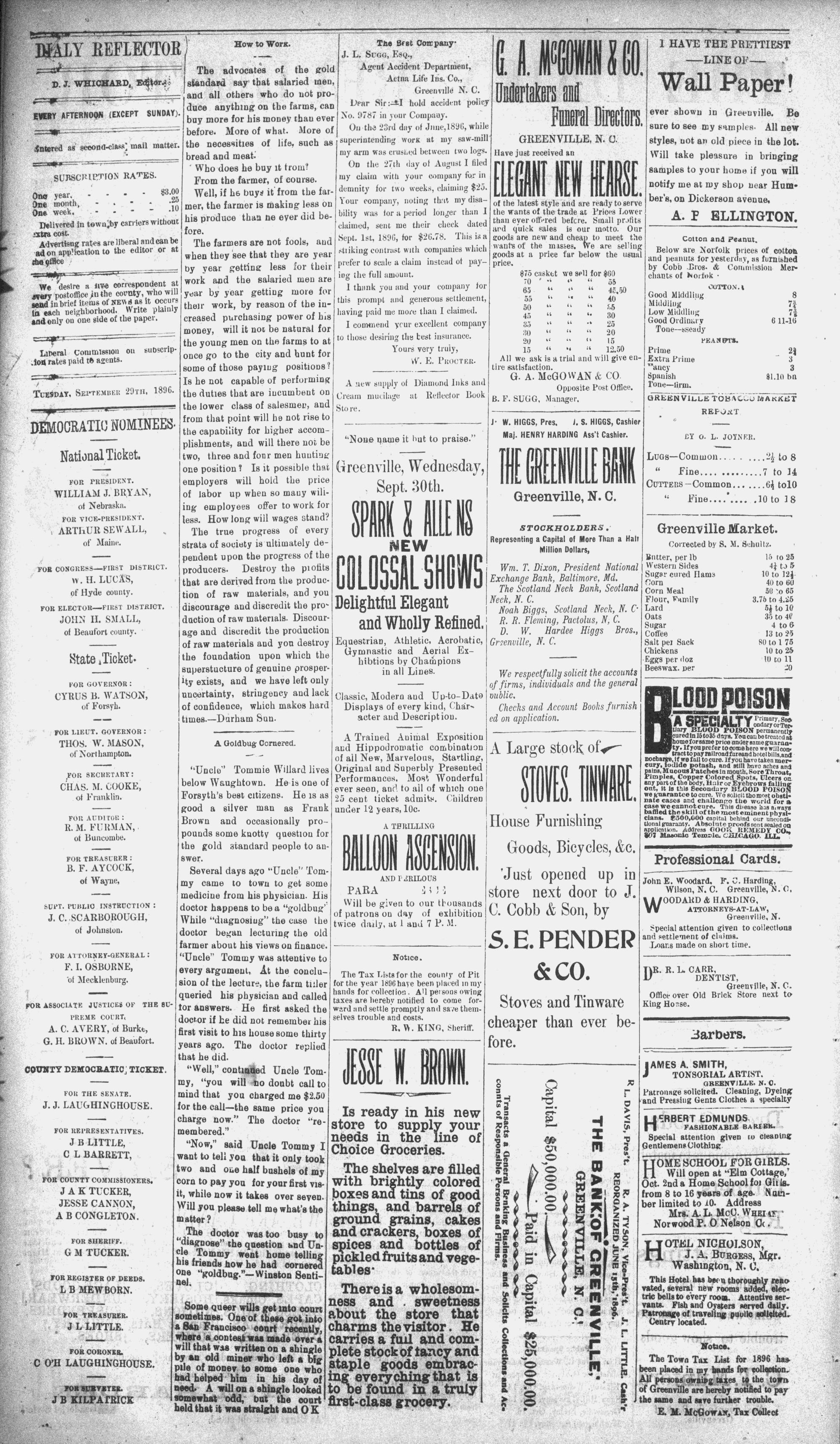 GREENVILLE. N. 0. TUESDAY, SEPTEMBER 29 1896.