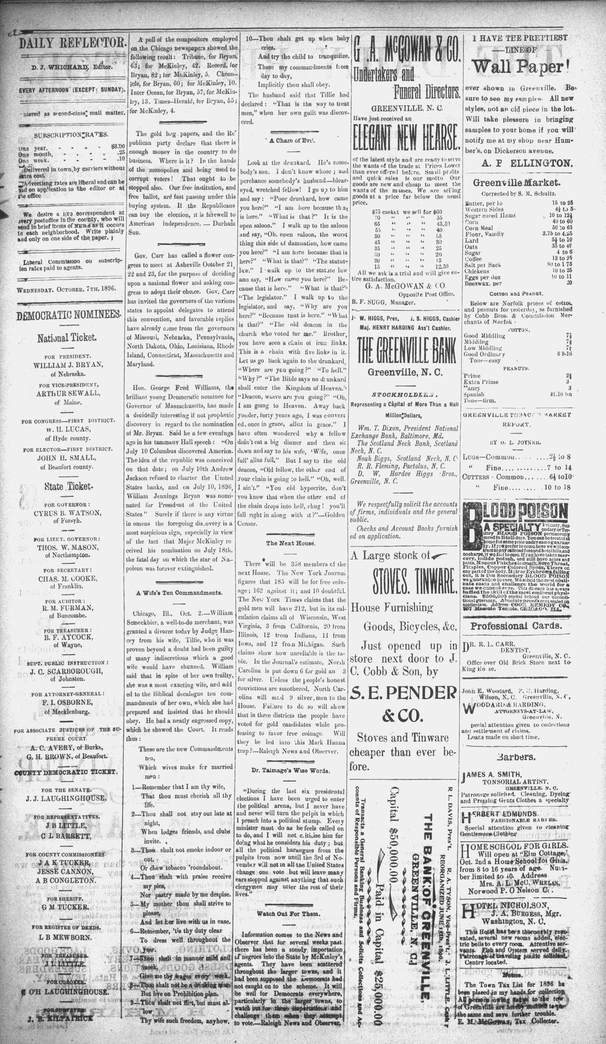 GREENVILLE, N. C.. WEDNESDAY, OCTOBER 7 1896.