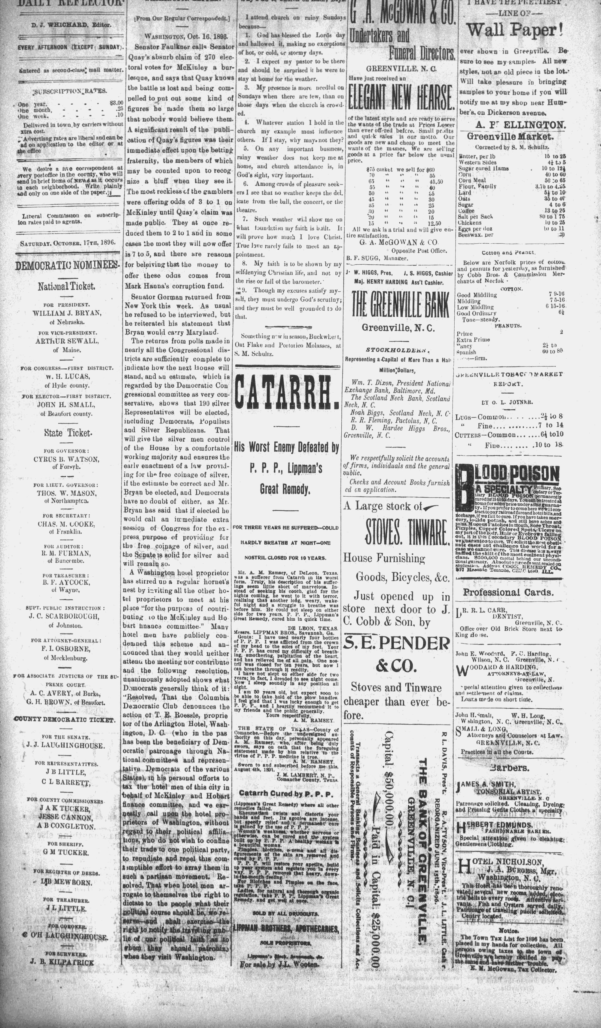 GREENVILLE, N. C., SATURDAY, OCTOBER 17, 1896.