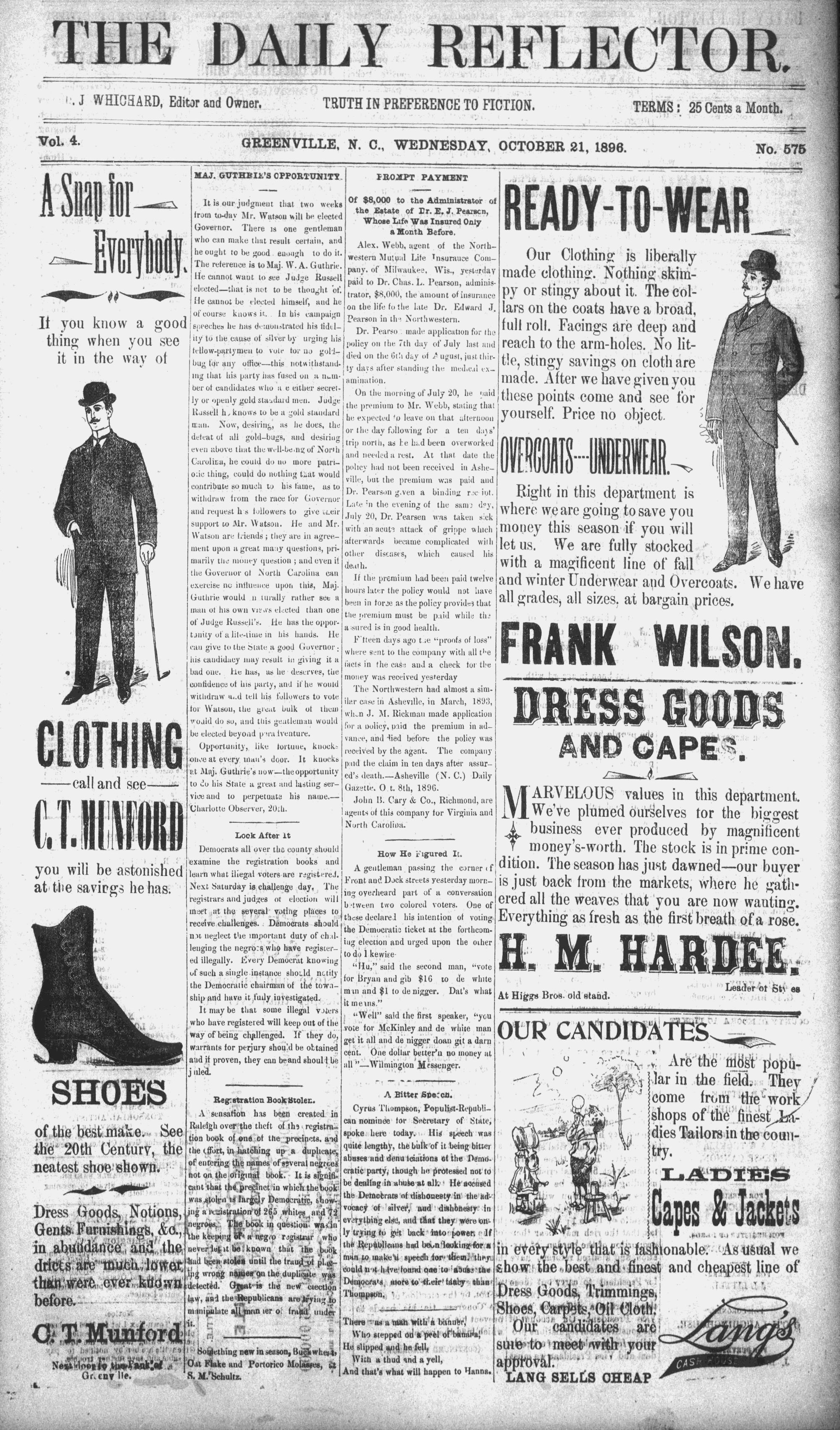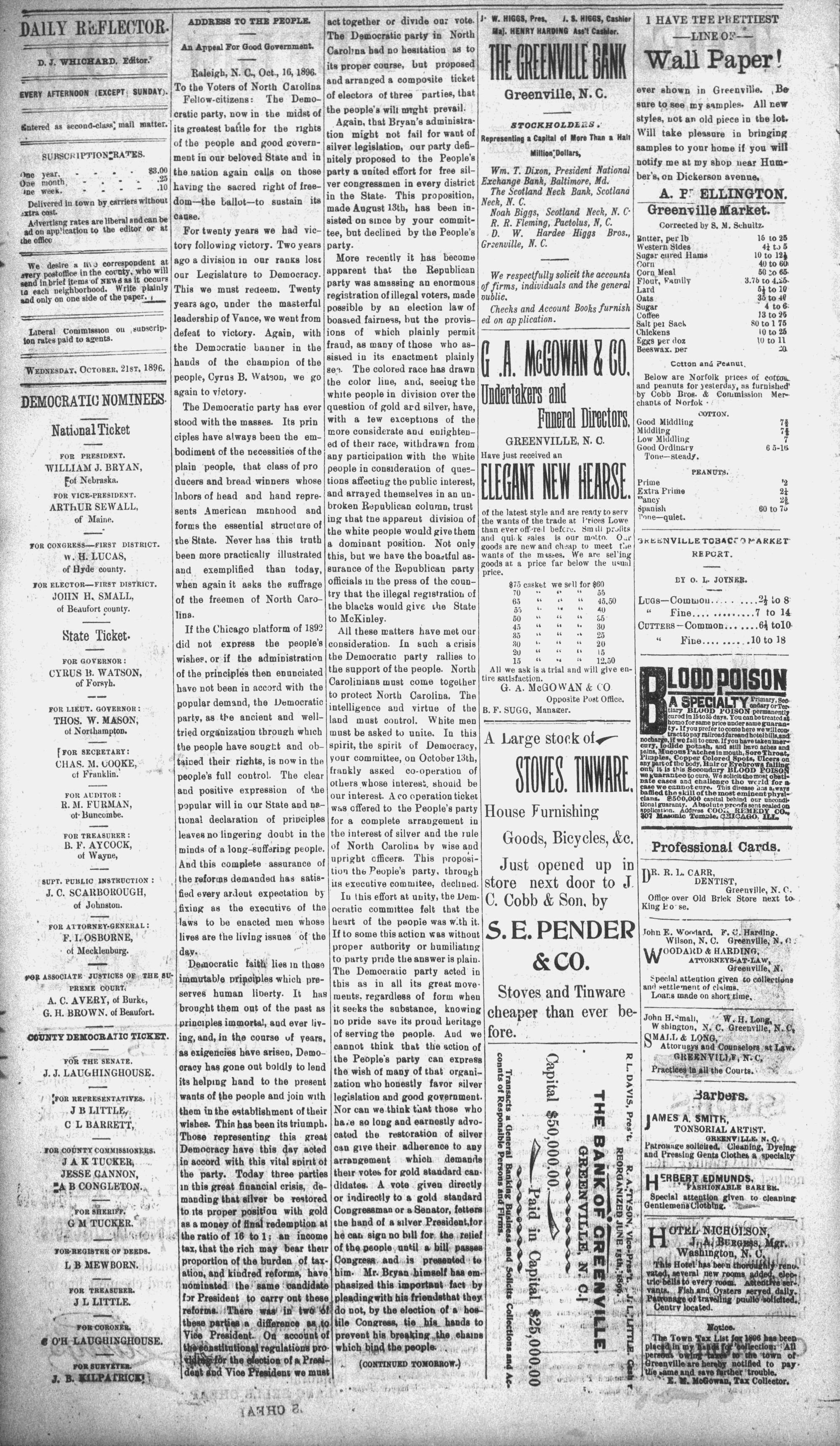 GREENVILLE, N. C., WEDNESDAY. OCTOBER 21, 1896.
