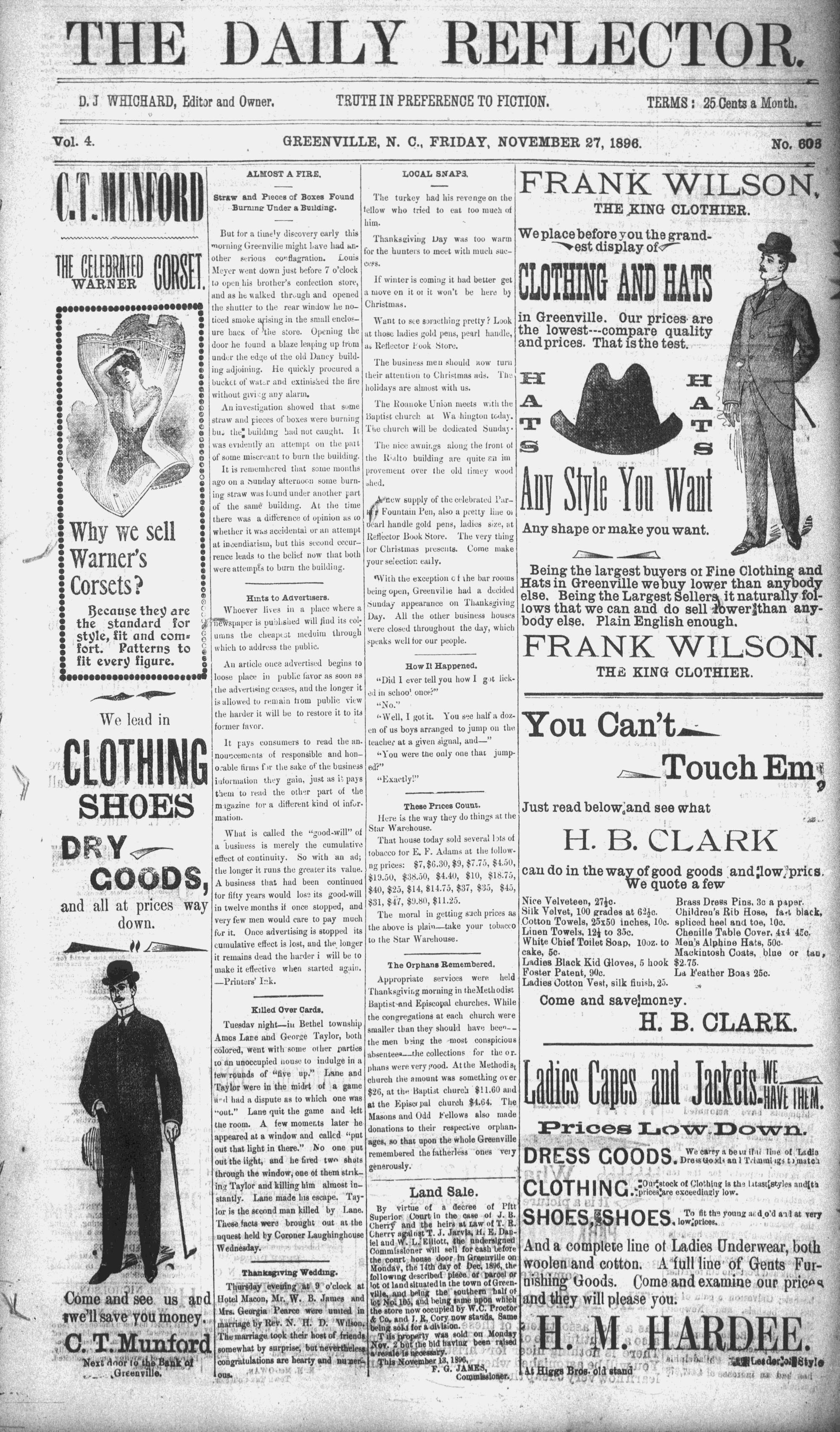 Vol. 4. GREENVILLE, N. C., FRIDAY, NOVEMBER 27, 1896. , No.