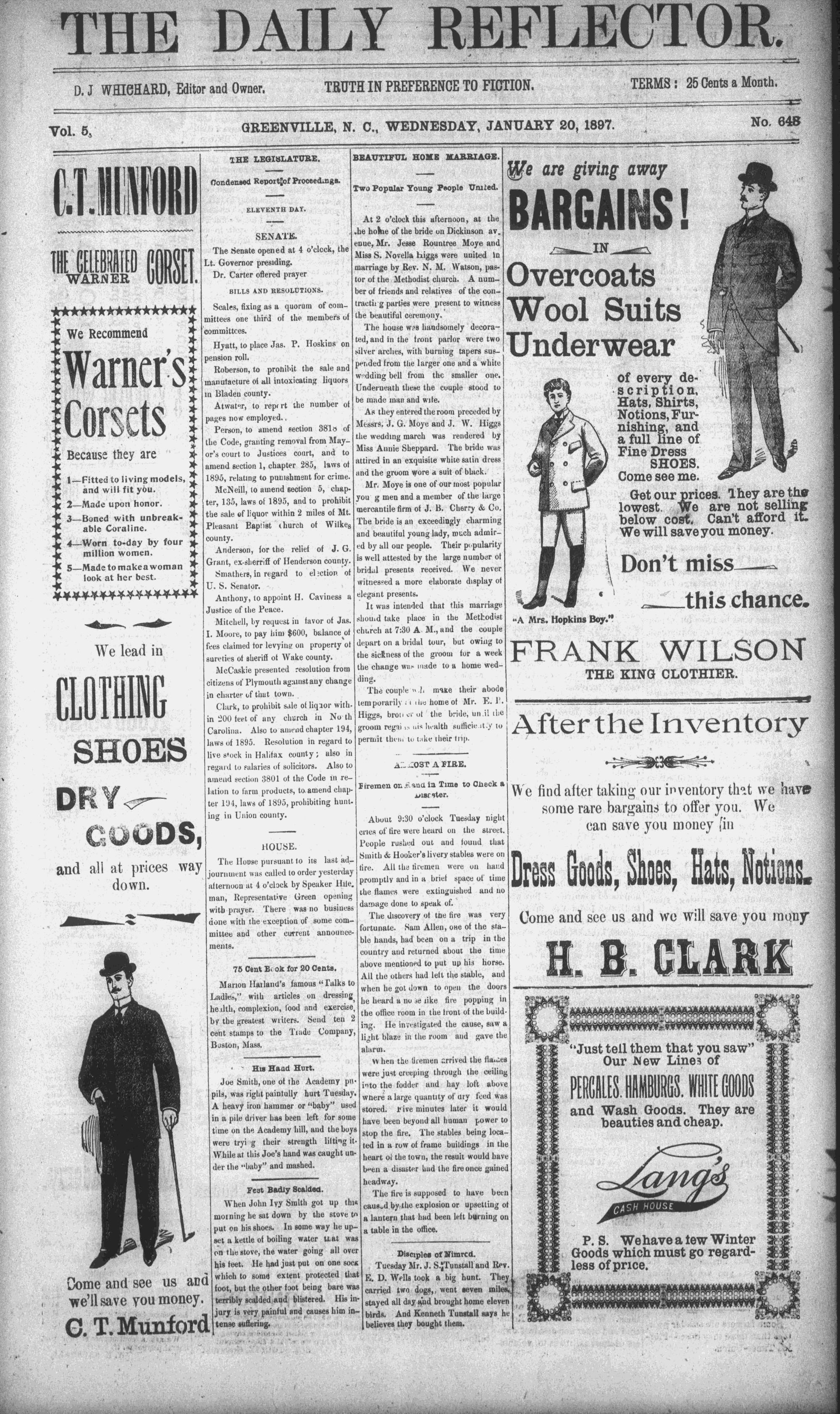 Vol. 5, _ @REENVILLE, N. C., WEDNESDAY, JANUARY 20, 1897.