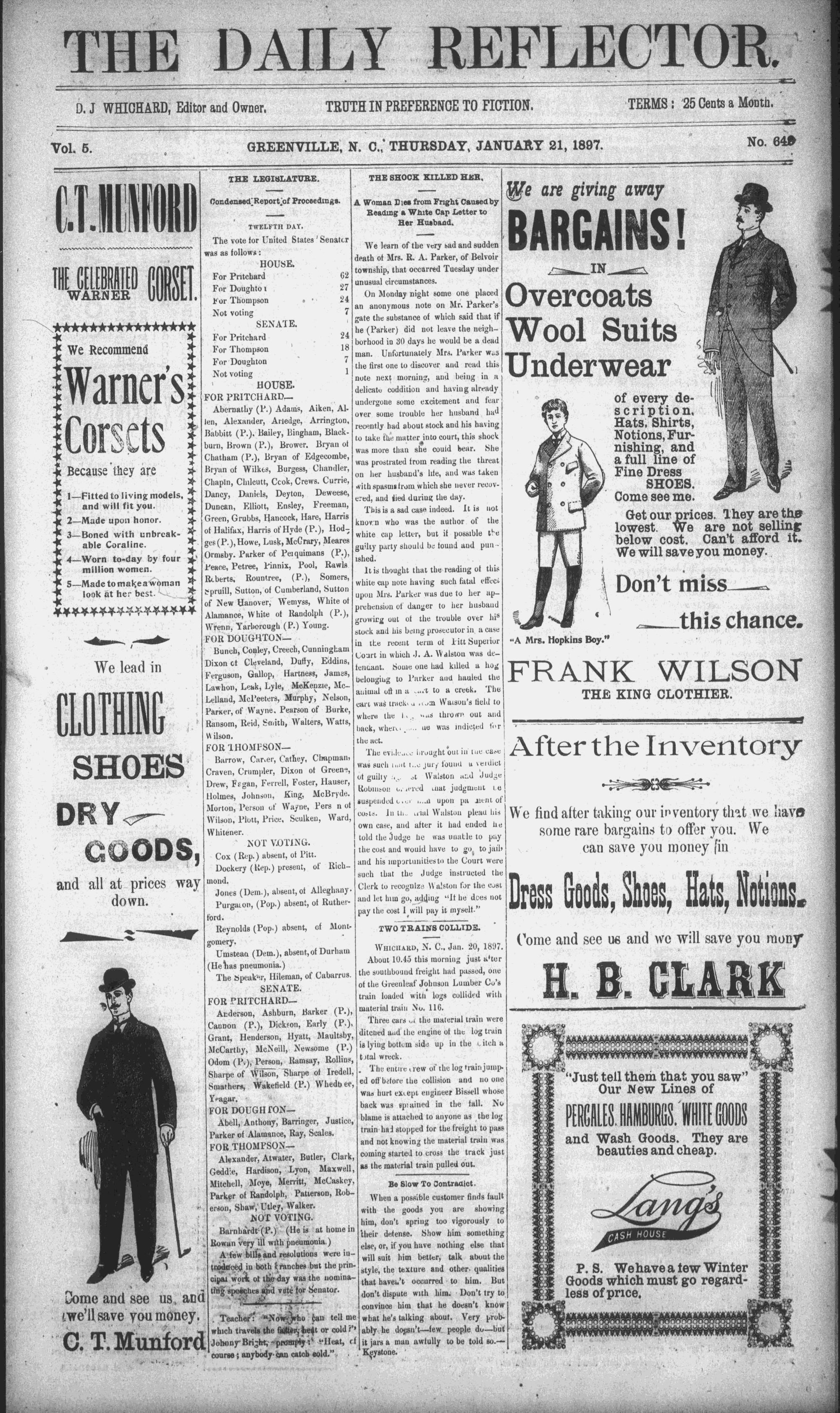 Vol. 5. | _ @REENVILLE, N. C.T THURSDAY, JANUARY 21, 1897.