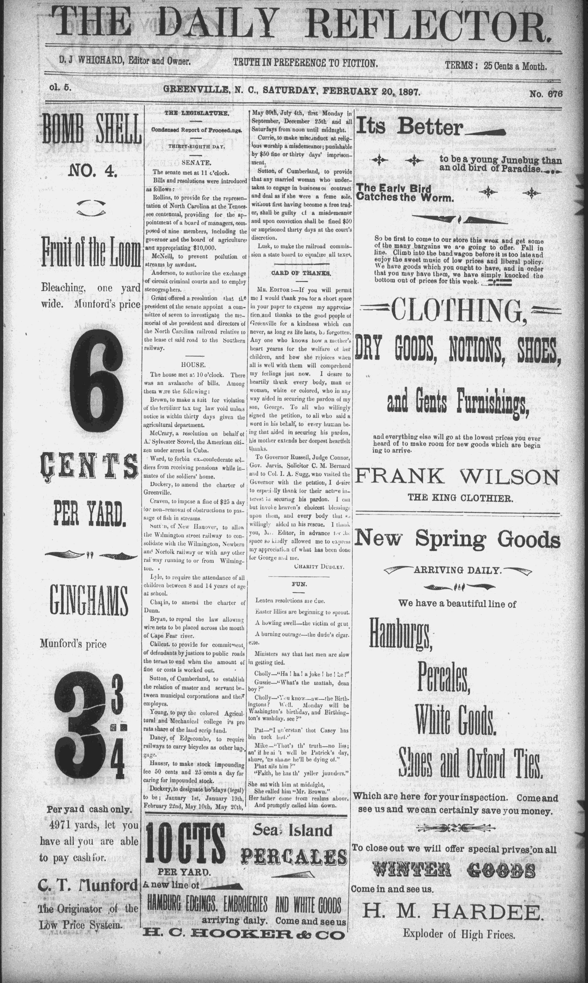 GREENVILLE, N. C., SATURDAY, FEBRUARY 20, 1897.