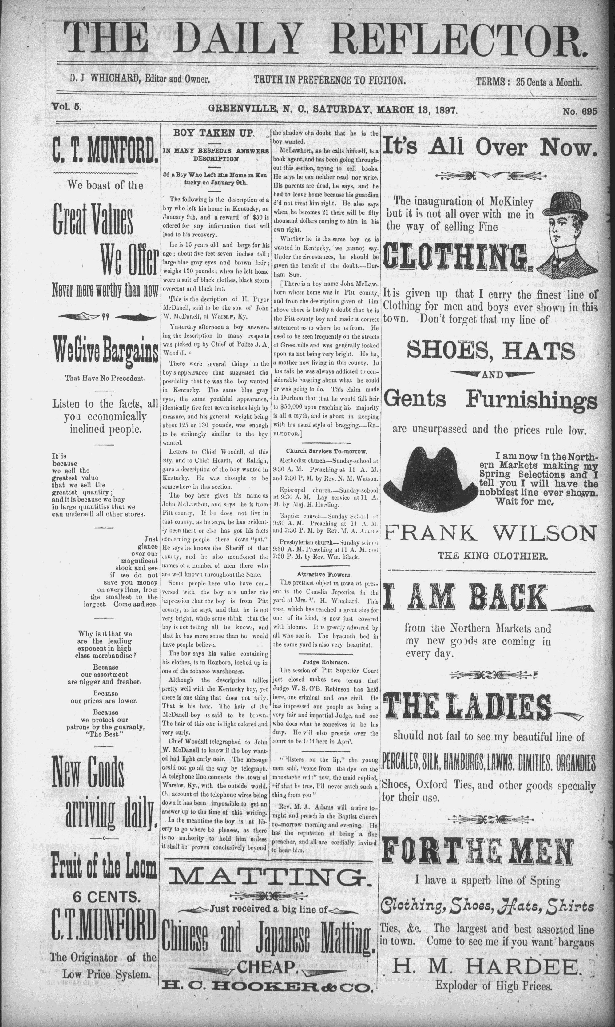 GREENVILLE, N. C., SATURDAY, MARCH 13, 1897. _" -