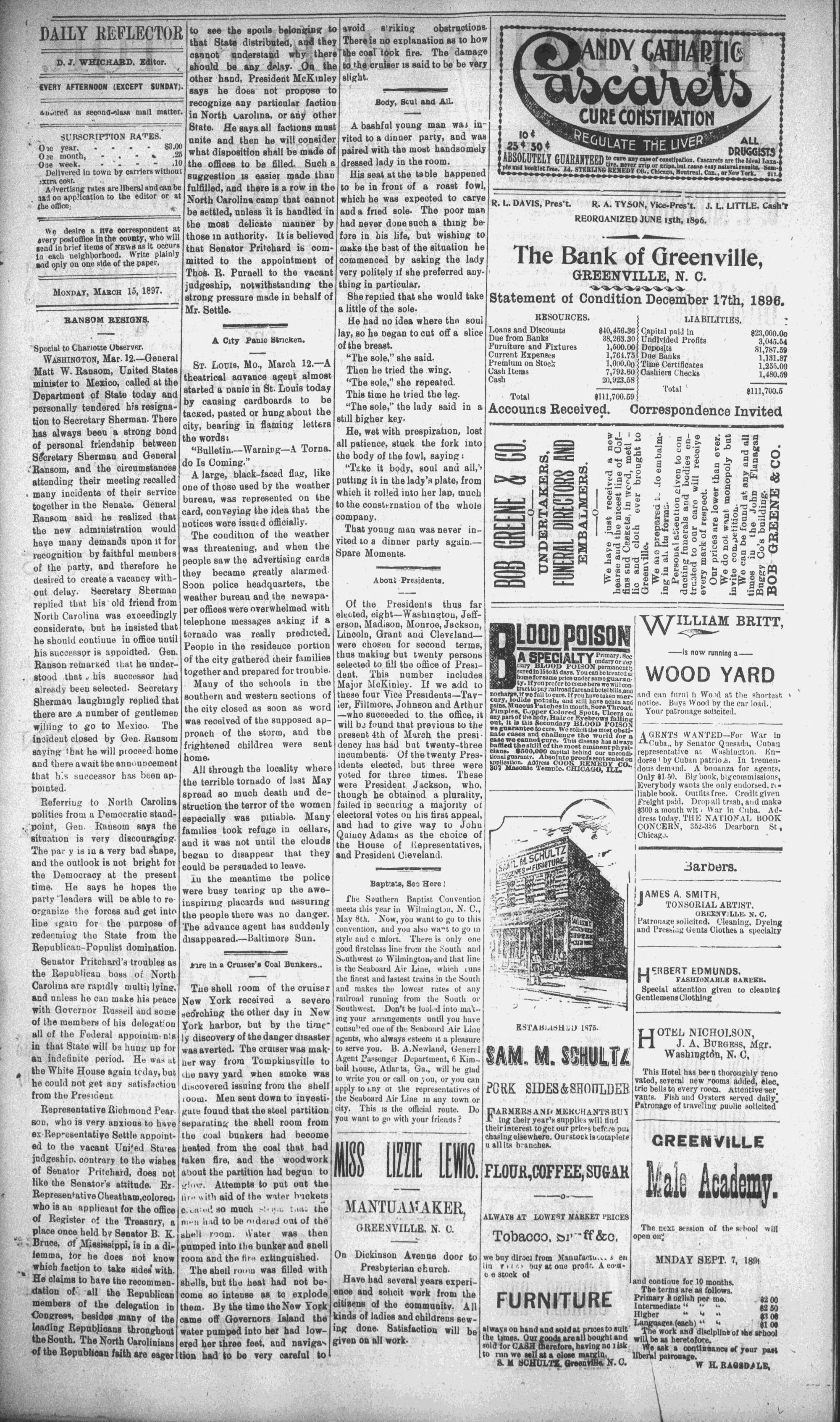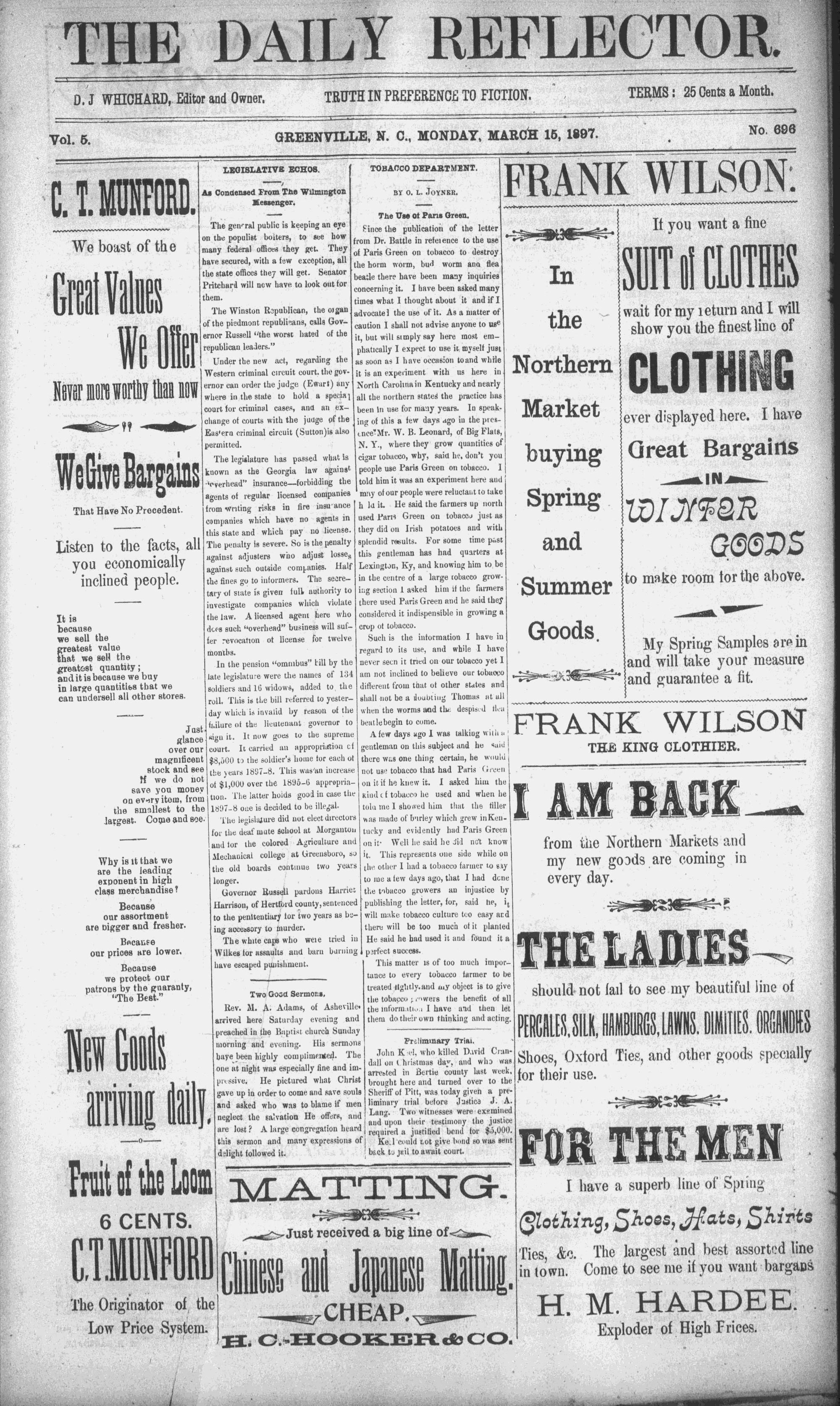 GREENVILLE, N. C., MONDAY, MARCH 15, 1897.