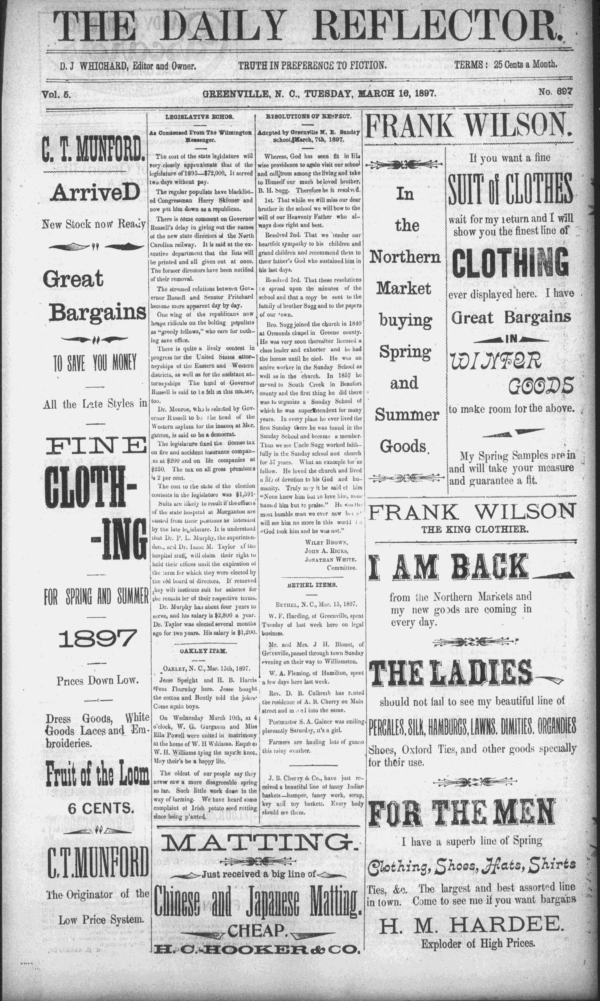 Vol. 5. _ GREENVILLE, N. O. TUESDAY, MARCH 16, 1897. | No. or