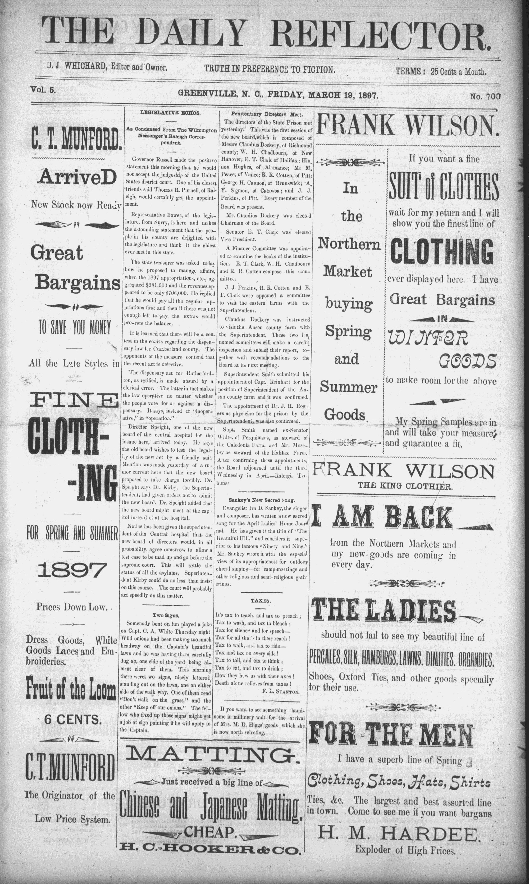 D.J WHICHARD, Editor andT Owner.