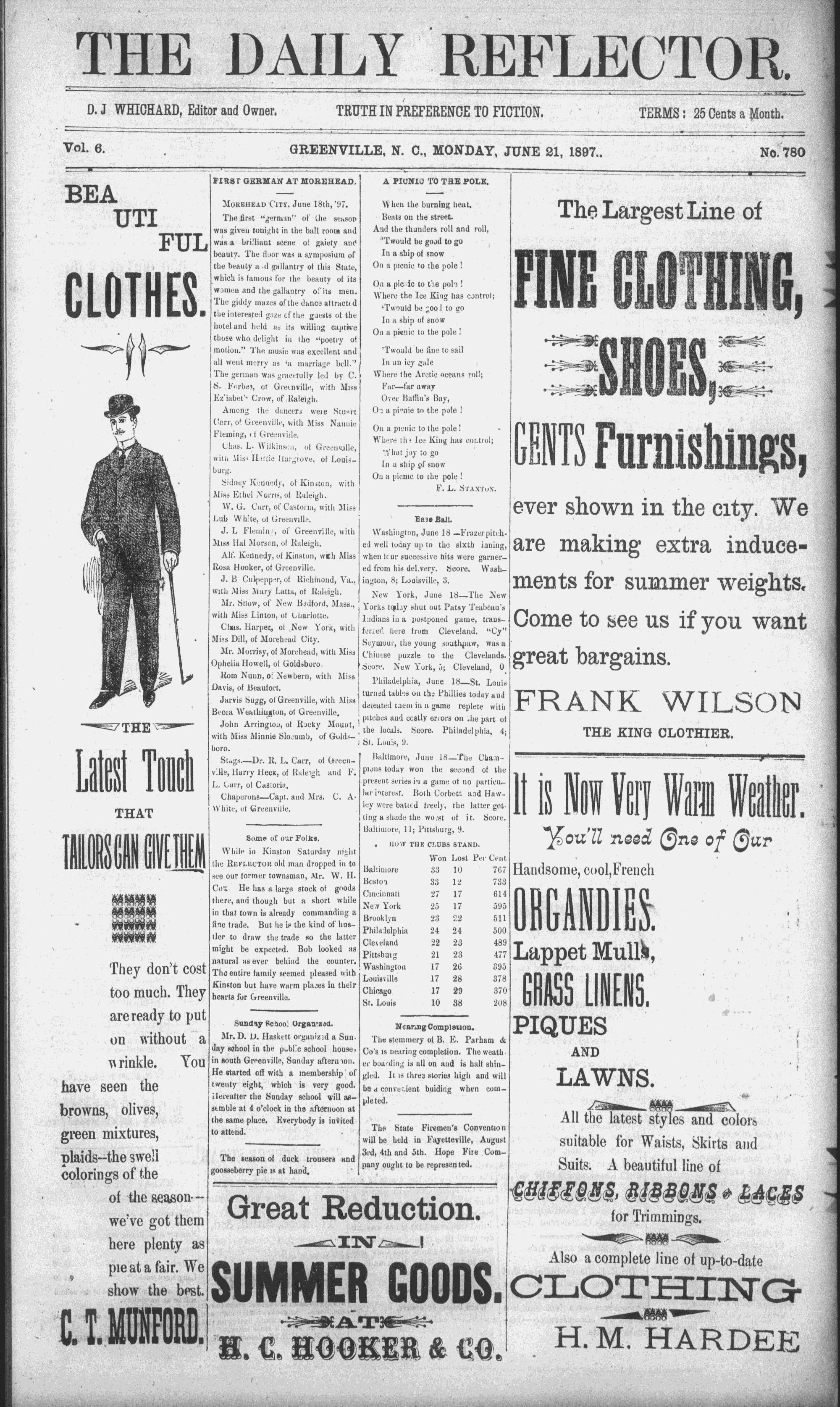 . Vol. 6. a GREENVILLE, N. C., MONDAY, JUNE 21, 1897. | No. 780