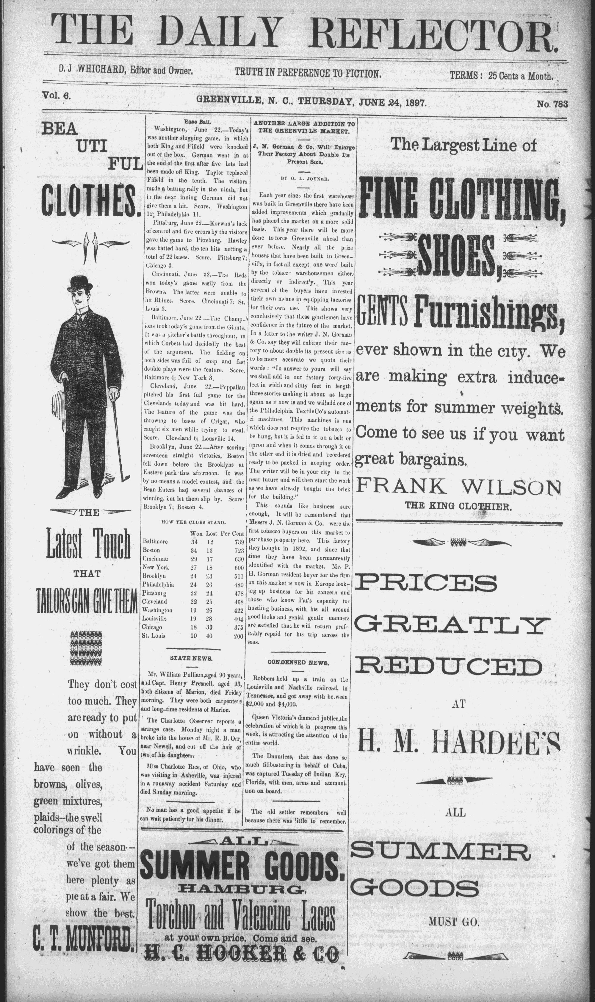 Vol. 6. GREENVILLE, N. C., THURSDAY, JUNE 24, 1897. | No, 783