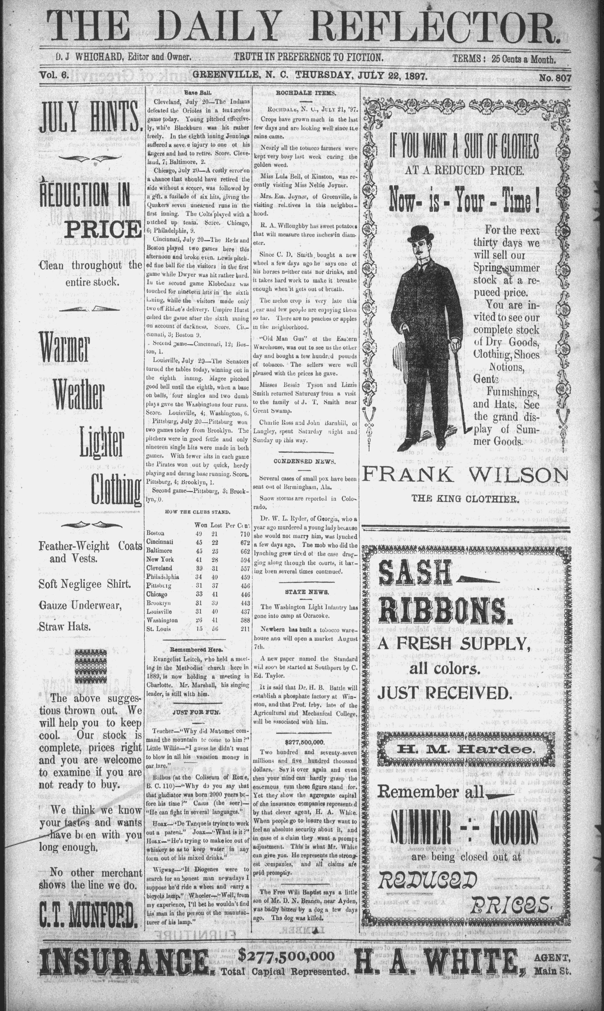 GREENVILLE, N. C. THURSDAY, JULY 22. 1807.