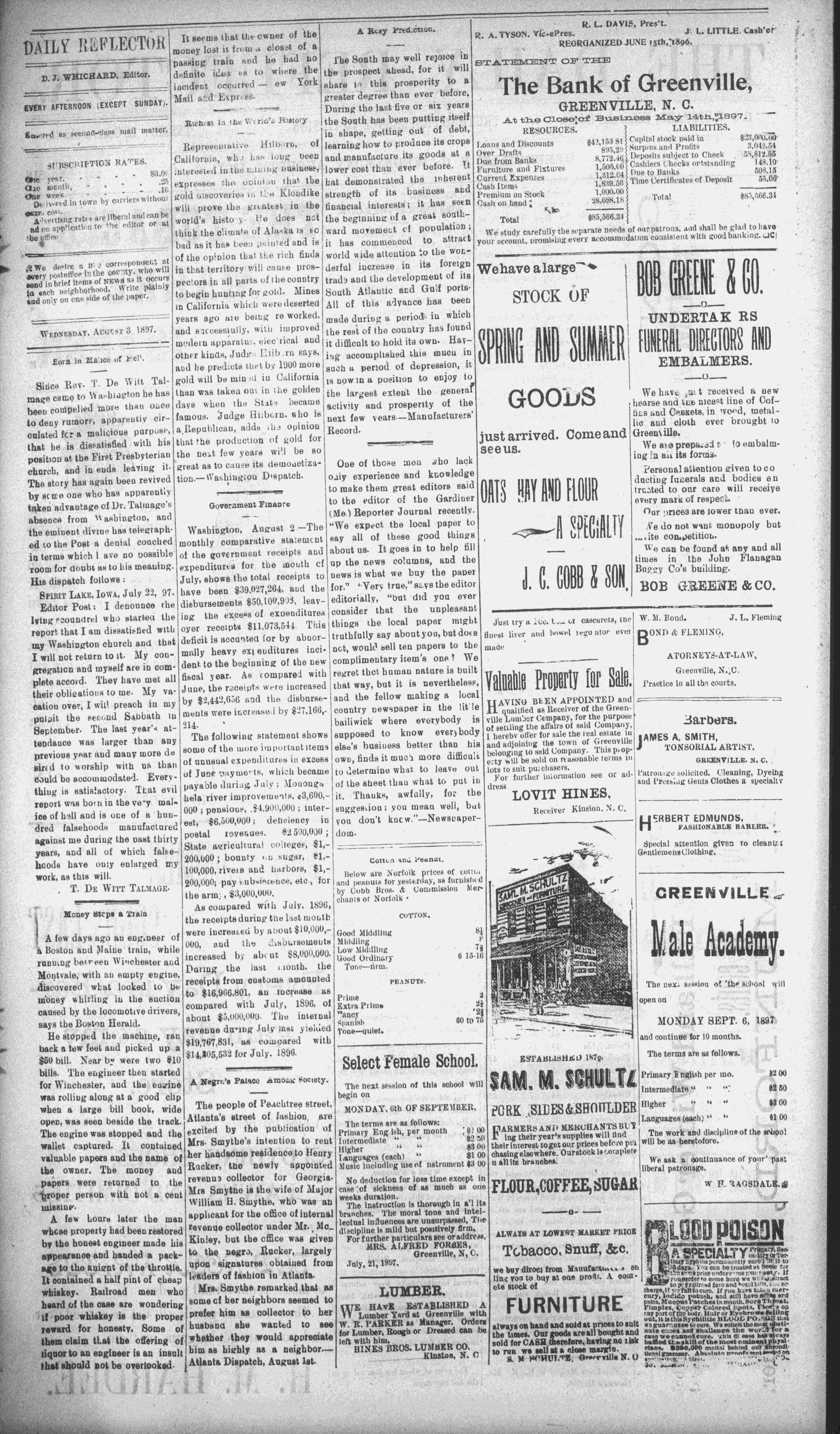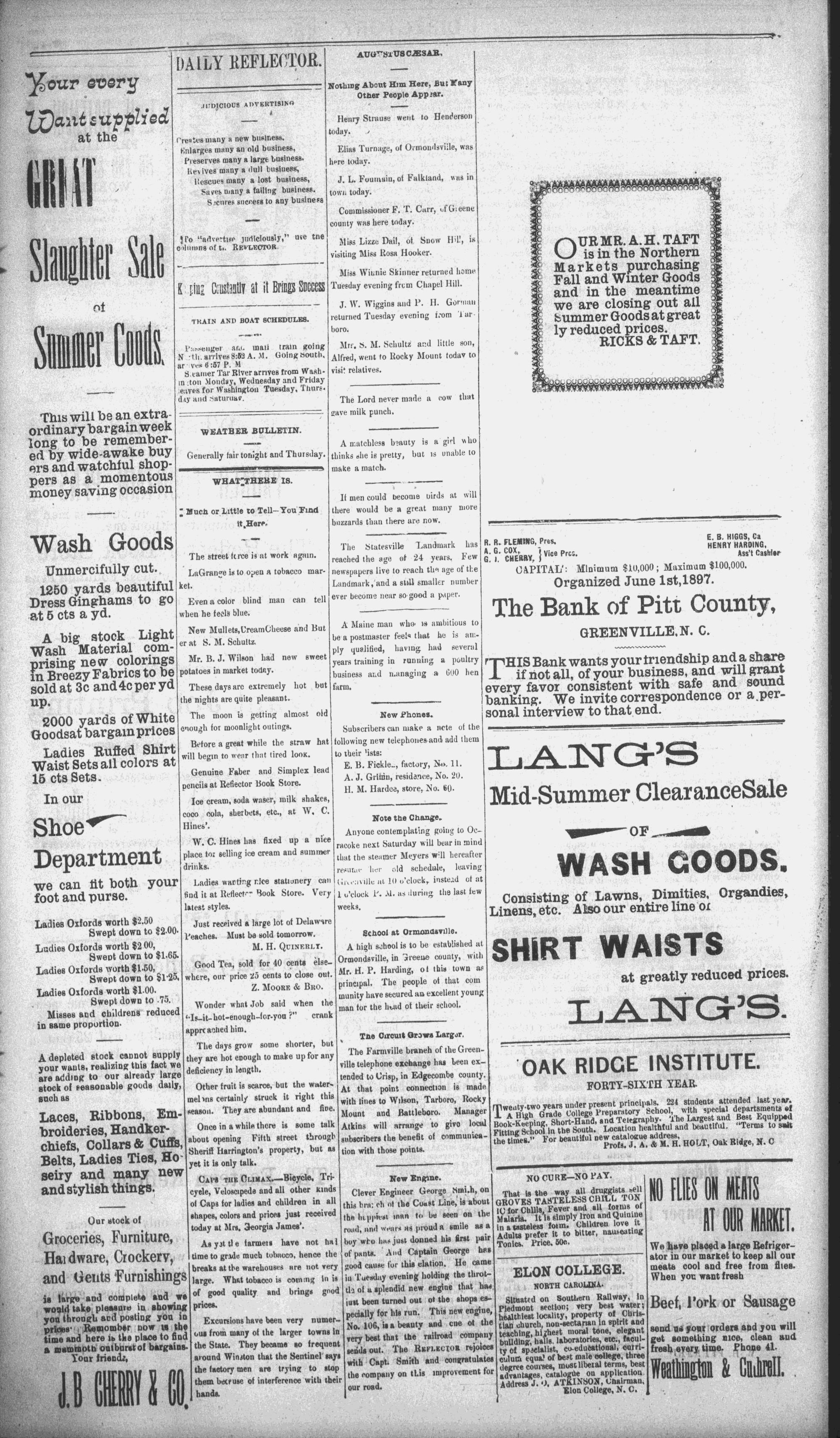 Ladies Oxfords worth $1.50, Good Tea, sold for 40 cents else- Ormondsville, in zreene county, with , ~7