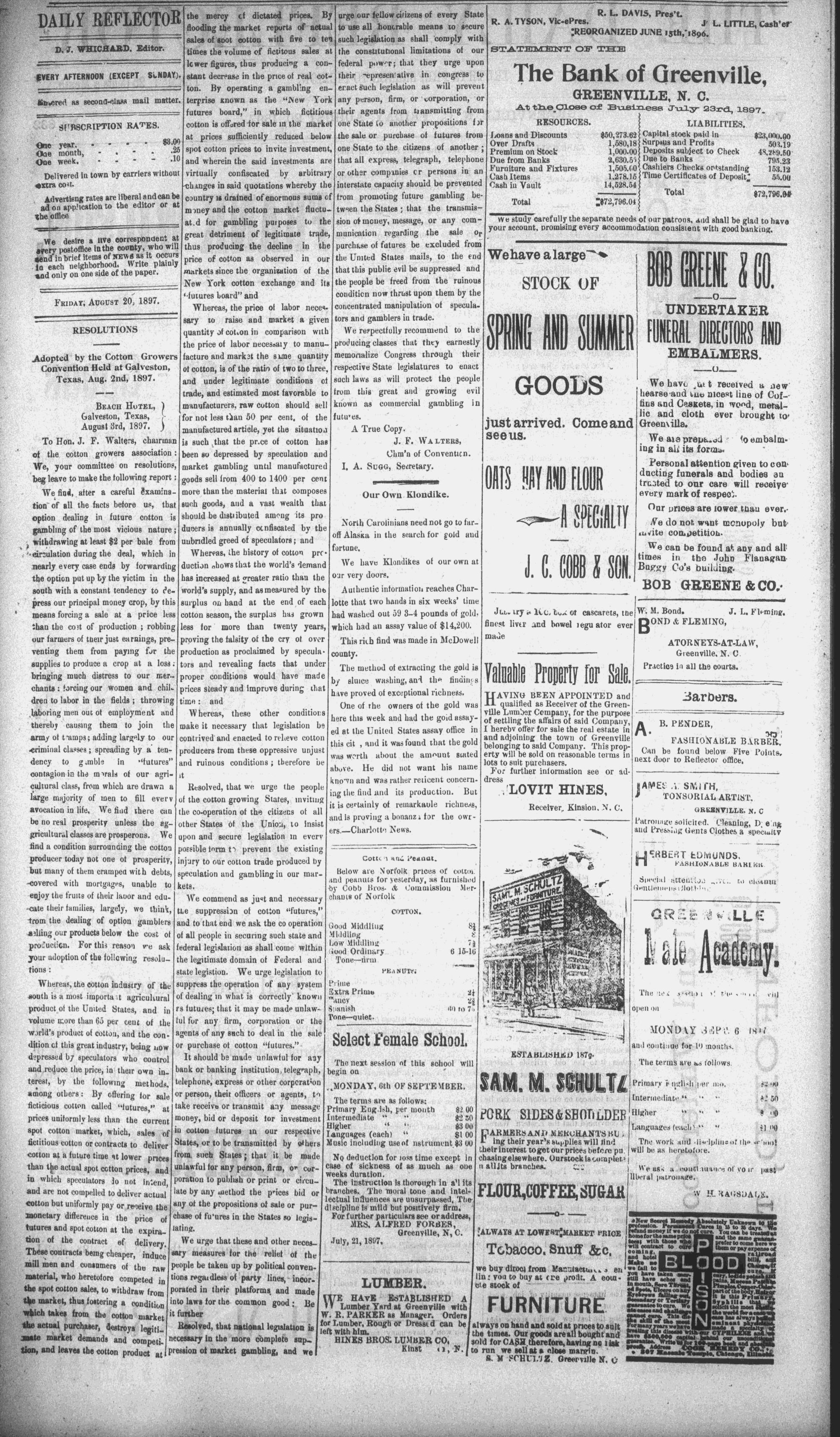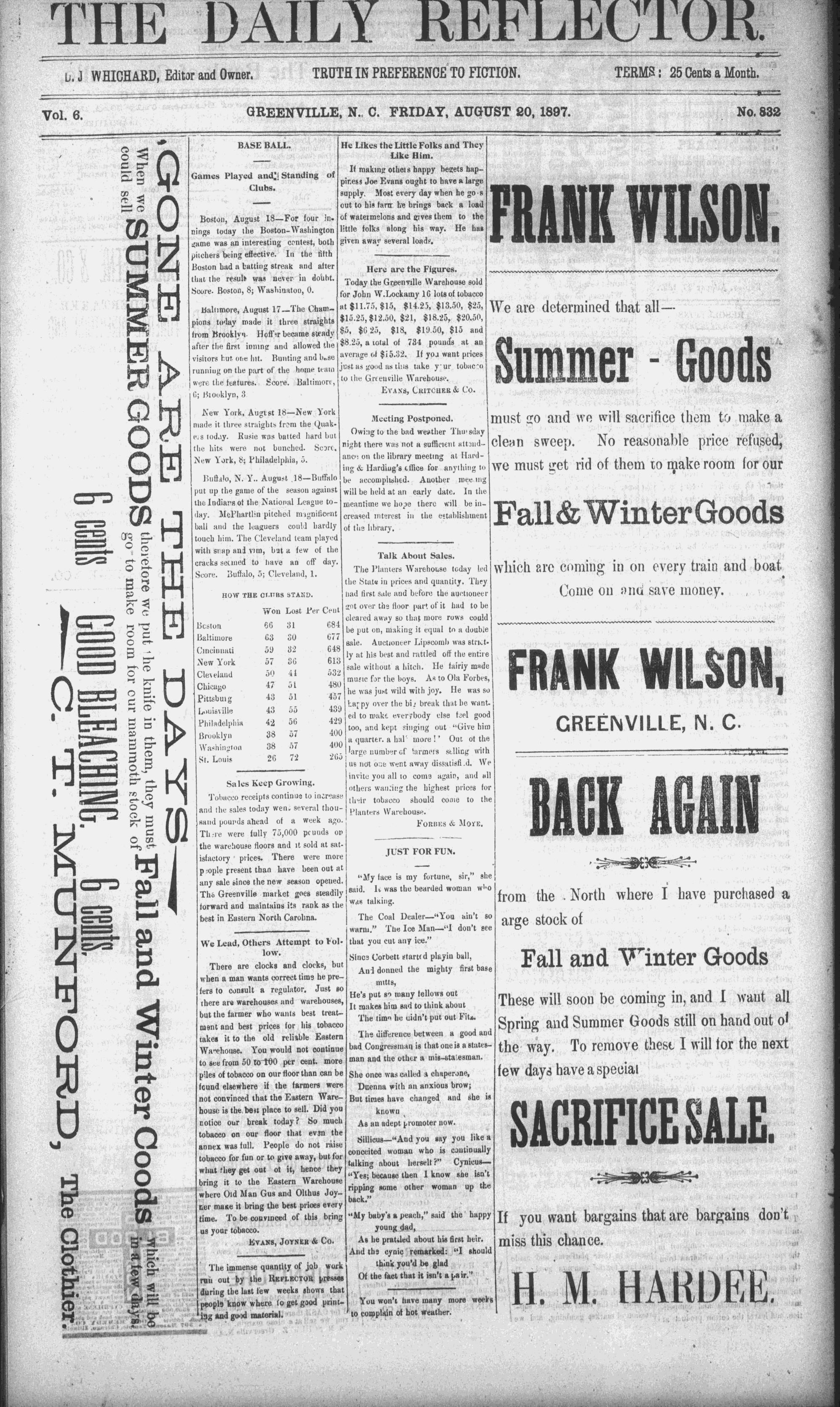 Vol. 6. GREENVILLE, N.C. FRIDAY, AUGUST 20, 1897. No, 832