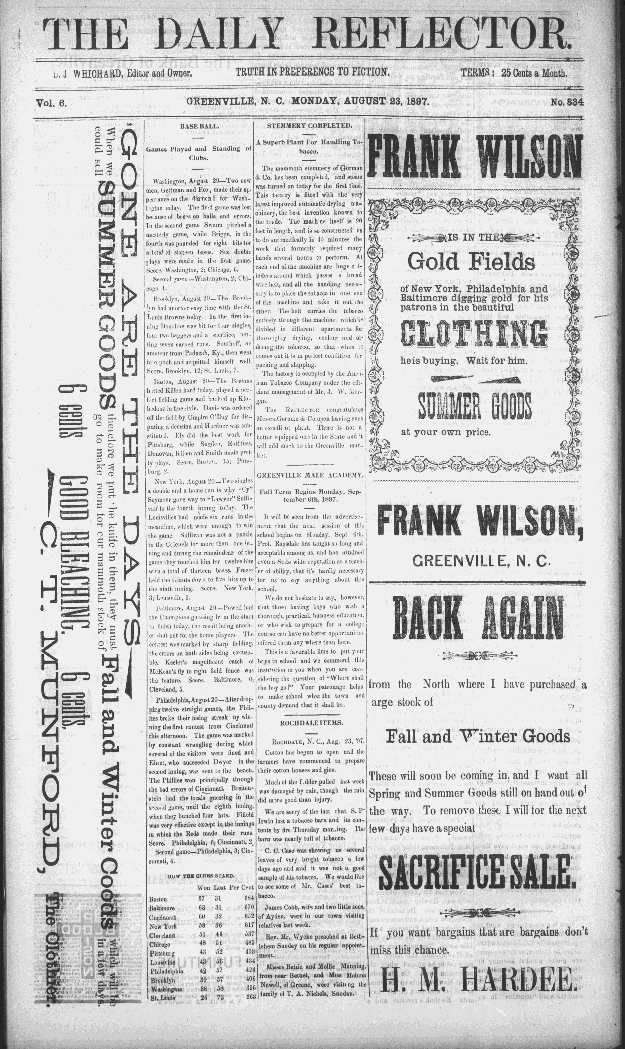 GREENVILLE, N. C. MONDAY, AUGUST. 23,