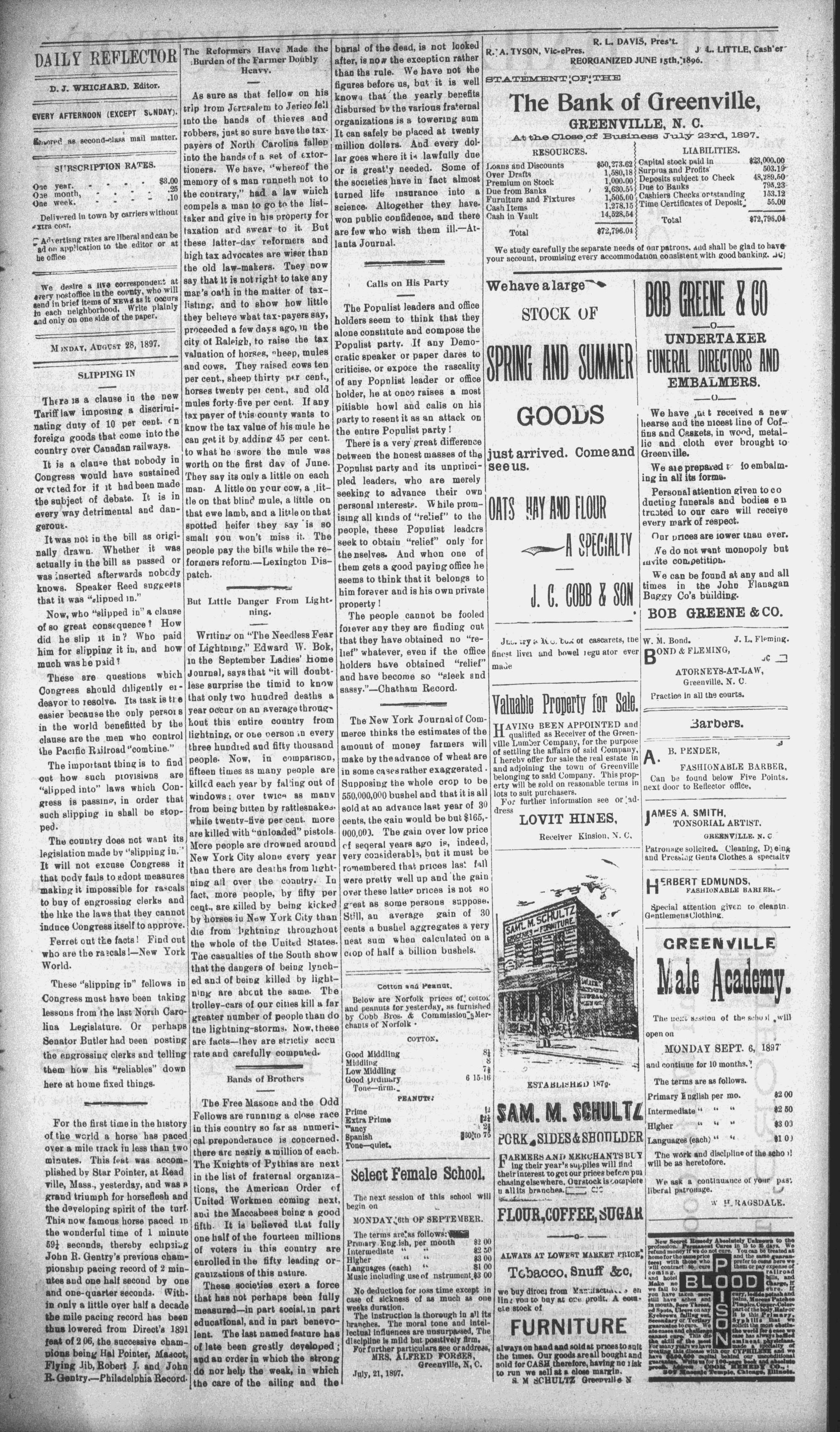 Yheo GREENVILLE, N. C. MONDAY, AUGUST 80, 1897. : No. 840