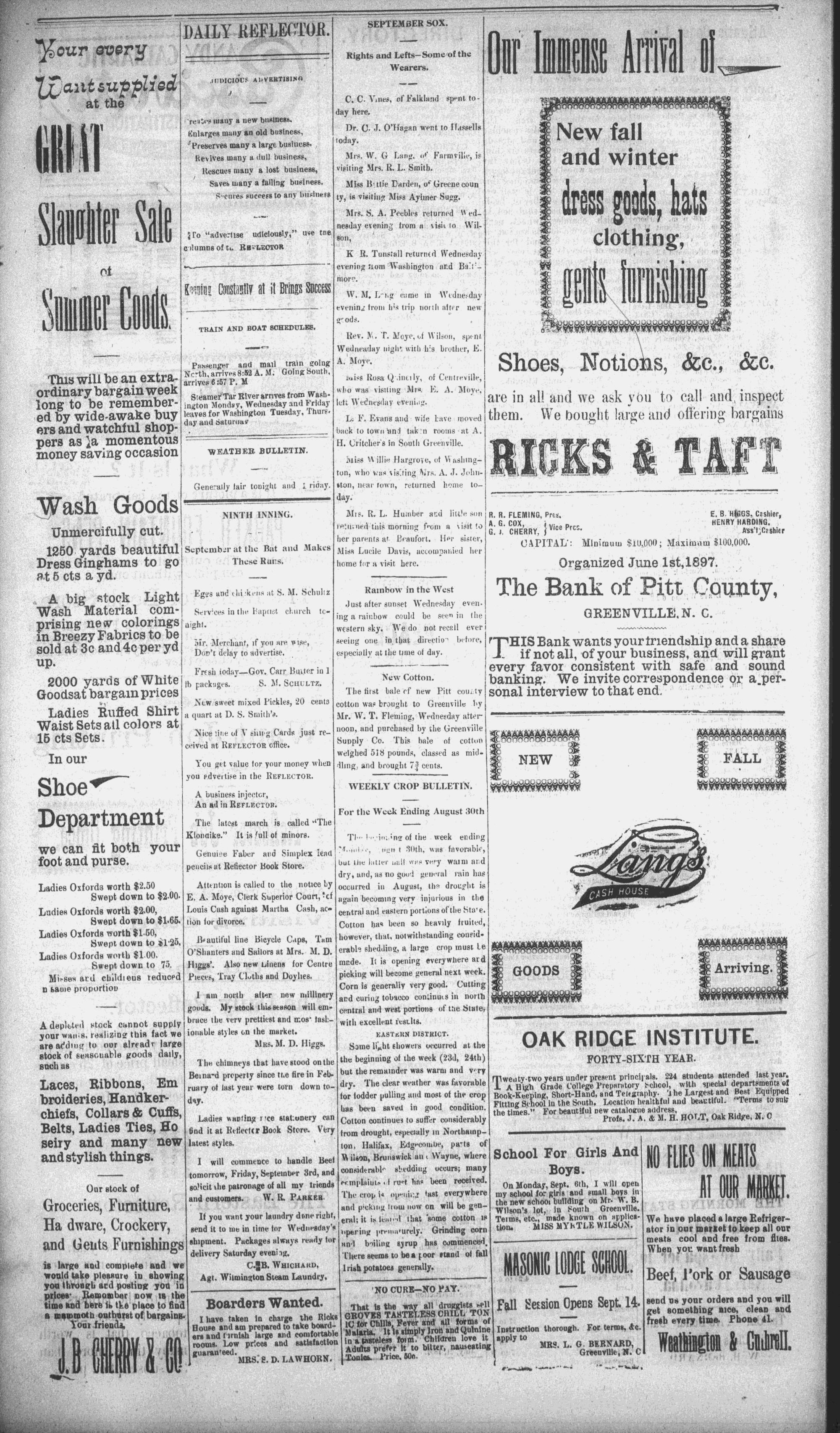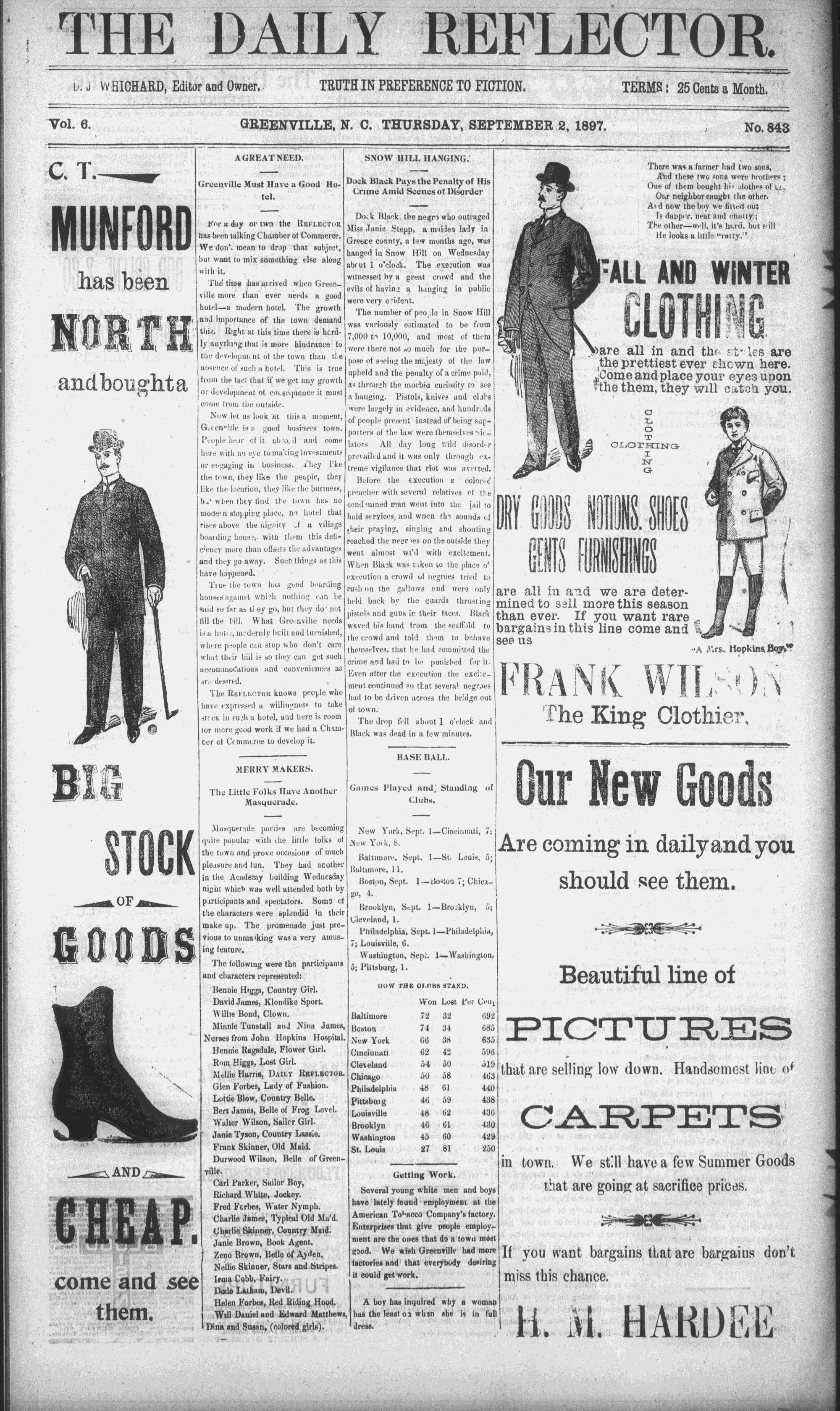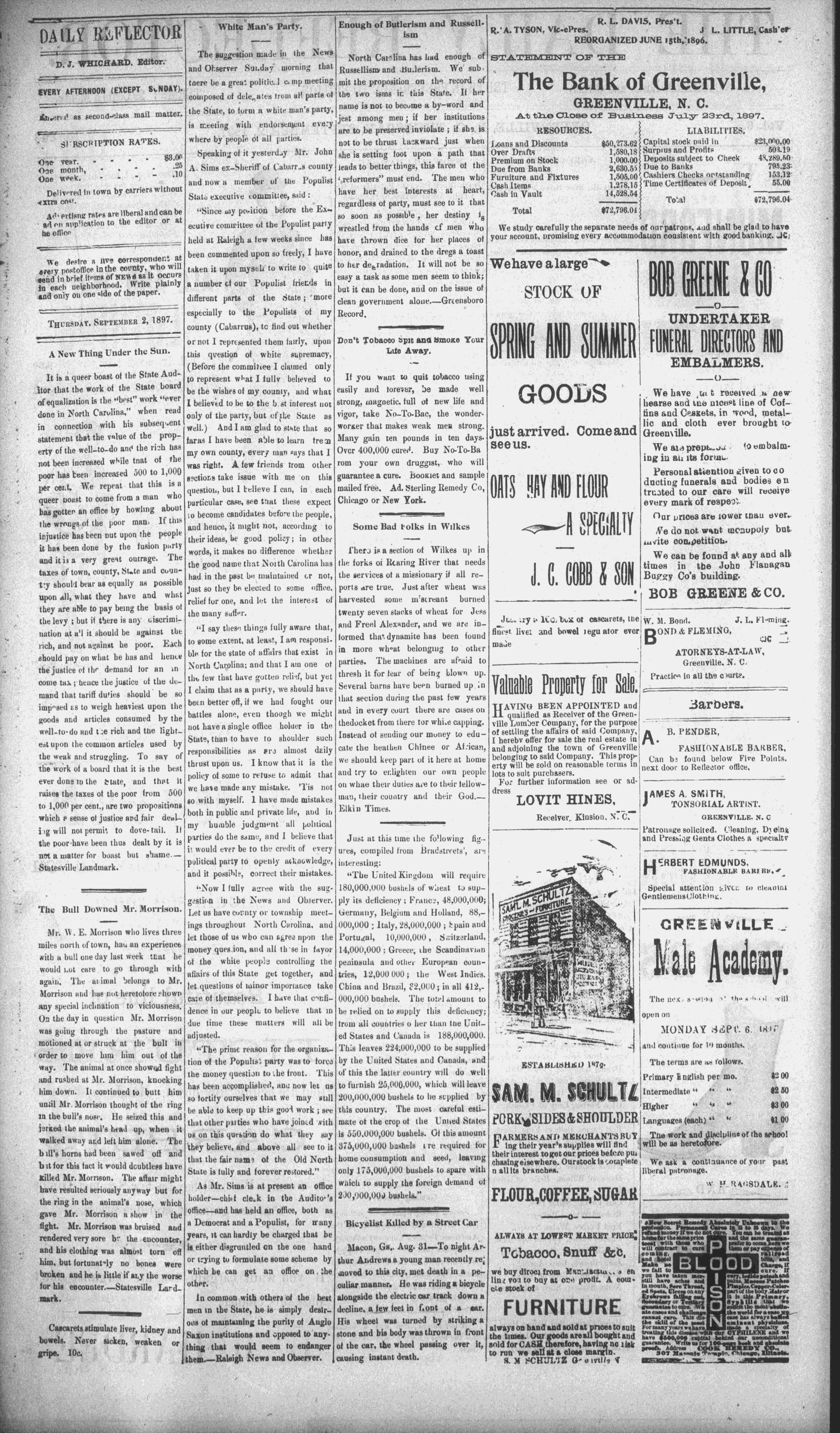 Vol. 6. GREENVILLE, N. C. THURSDAY, SEPTEMBER 2, 1897. | No. 848