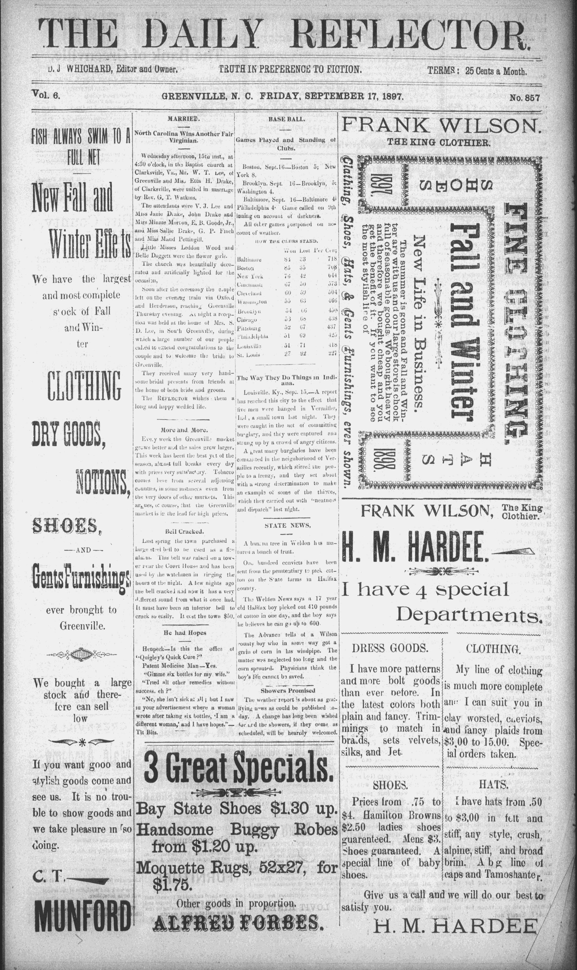 Clarksviile, Va, Mr. W. TY. vee, of