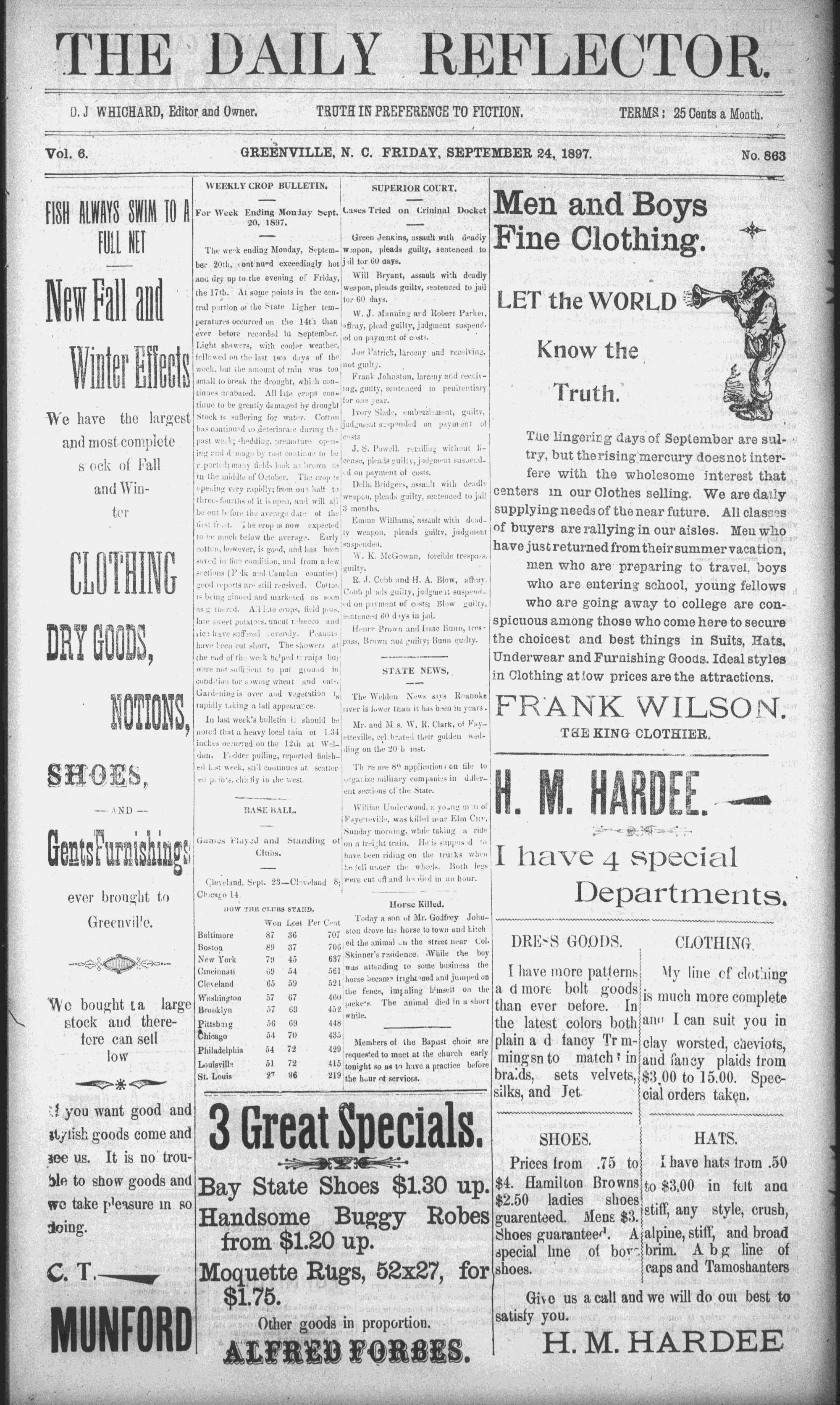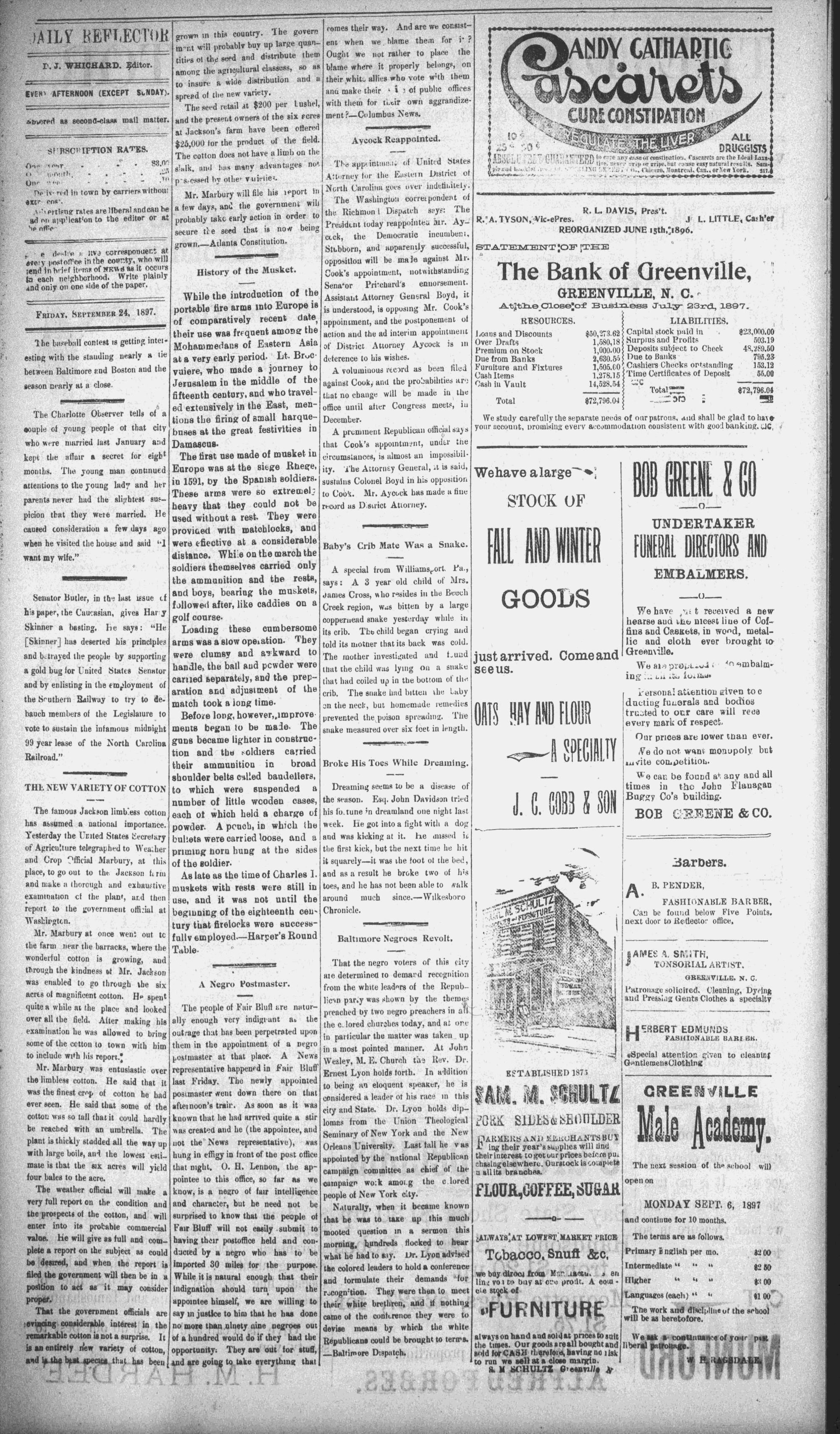 Vol. 6. -__ @REENVILLE, N. ©. FRIDAY, SEPTEMBER 24, 1897. x oeae