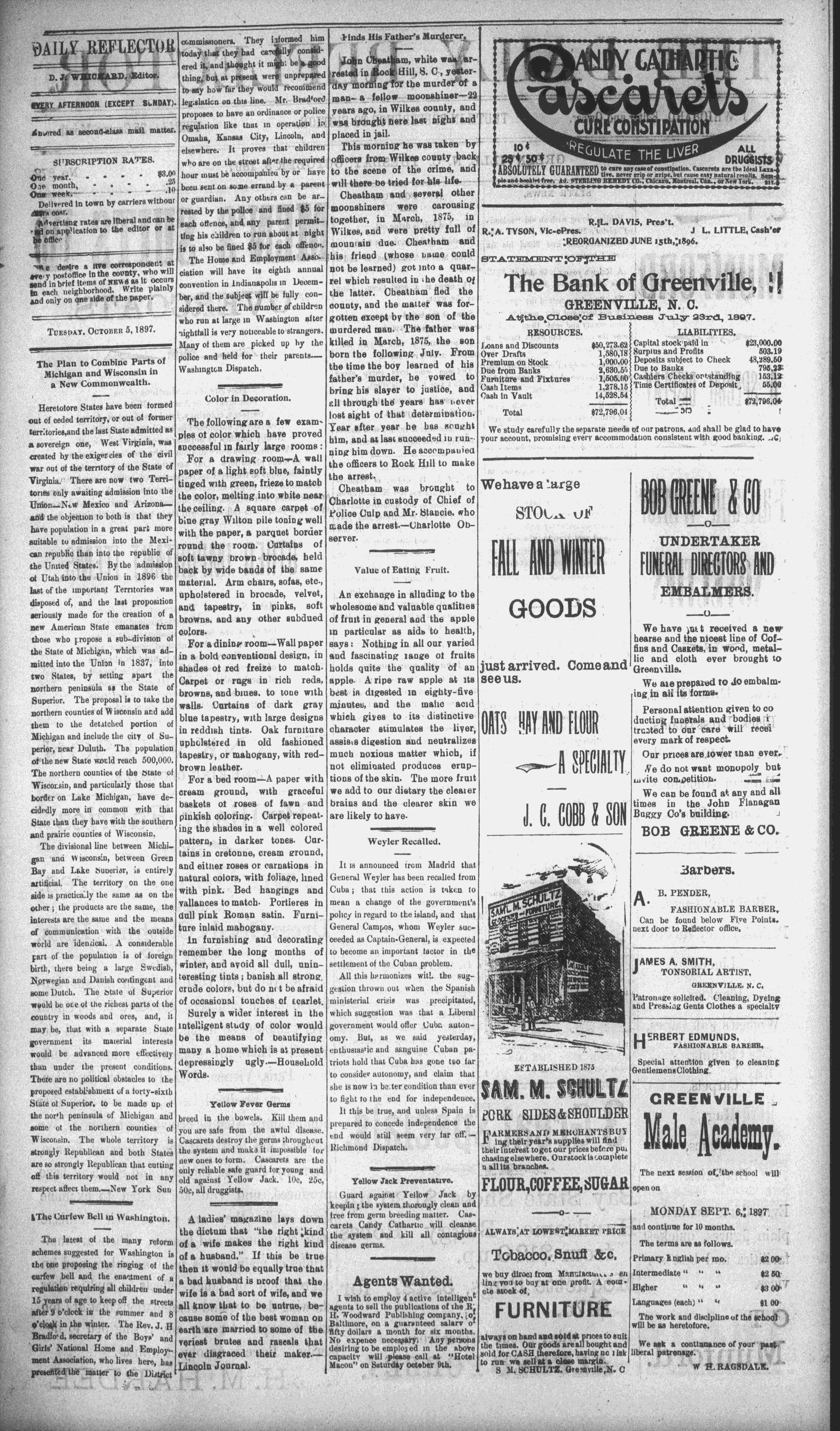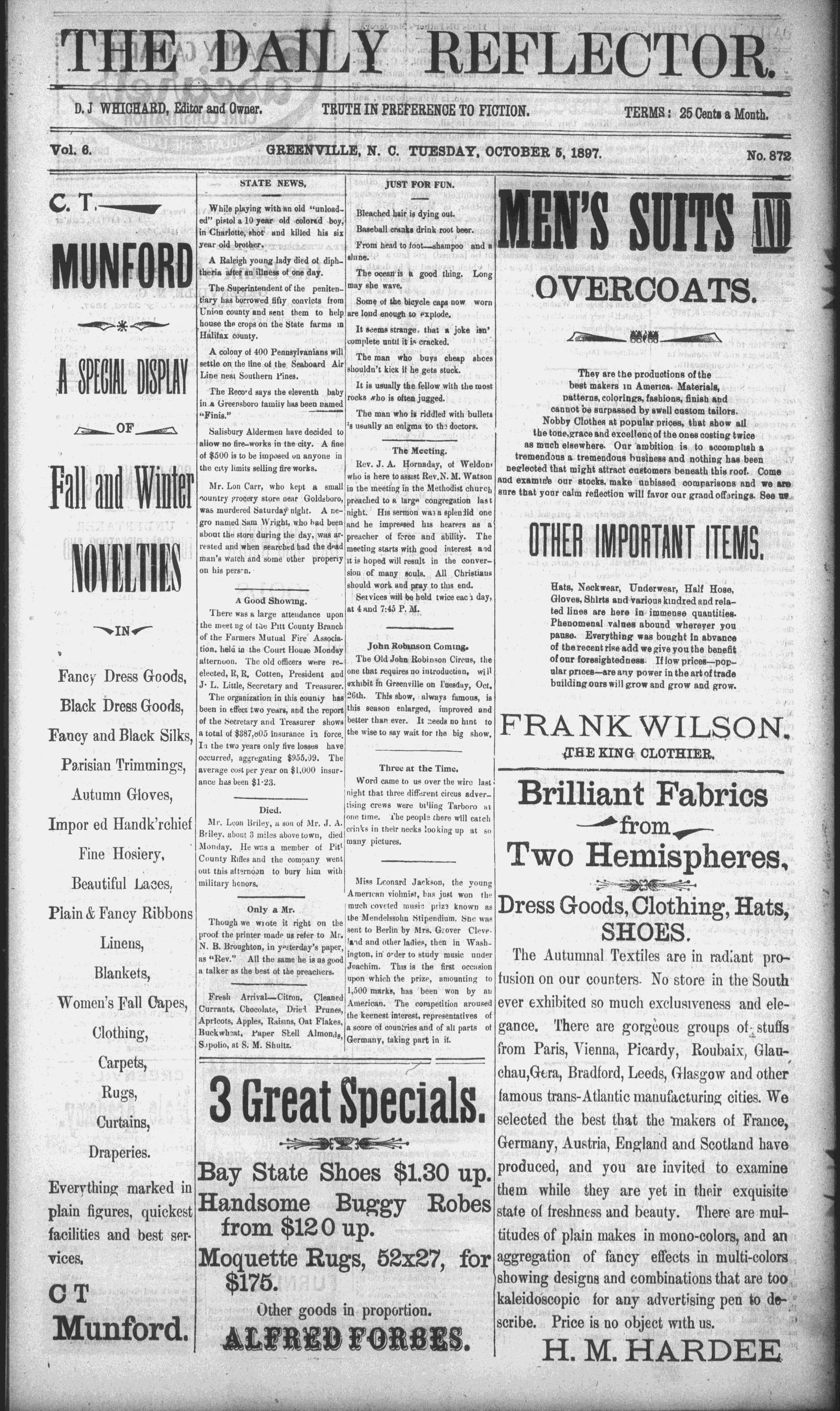 '. @REENVILLE, N. C. TUESDAY, OCTOBER 6, 1897.