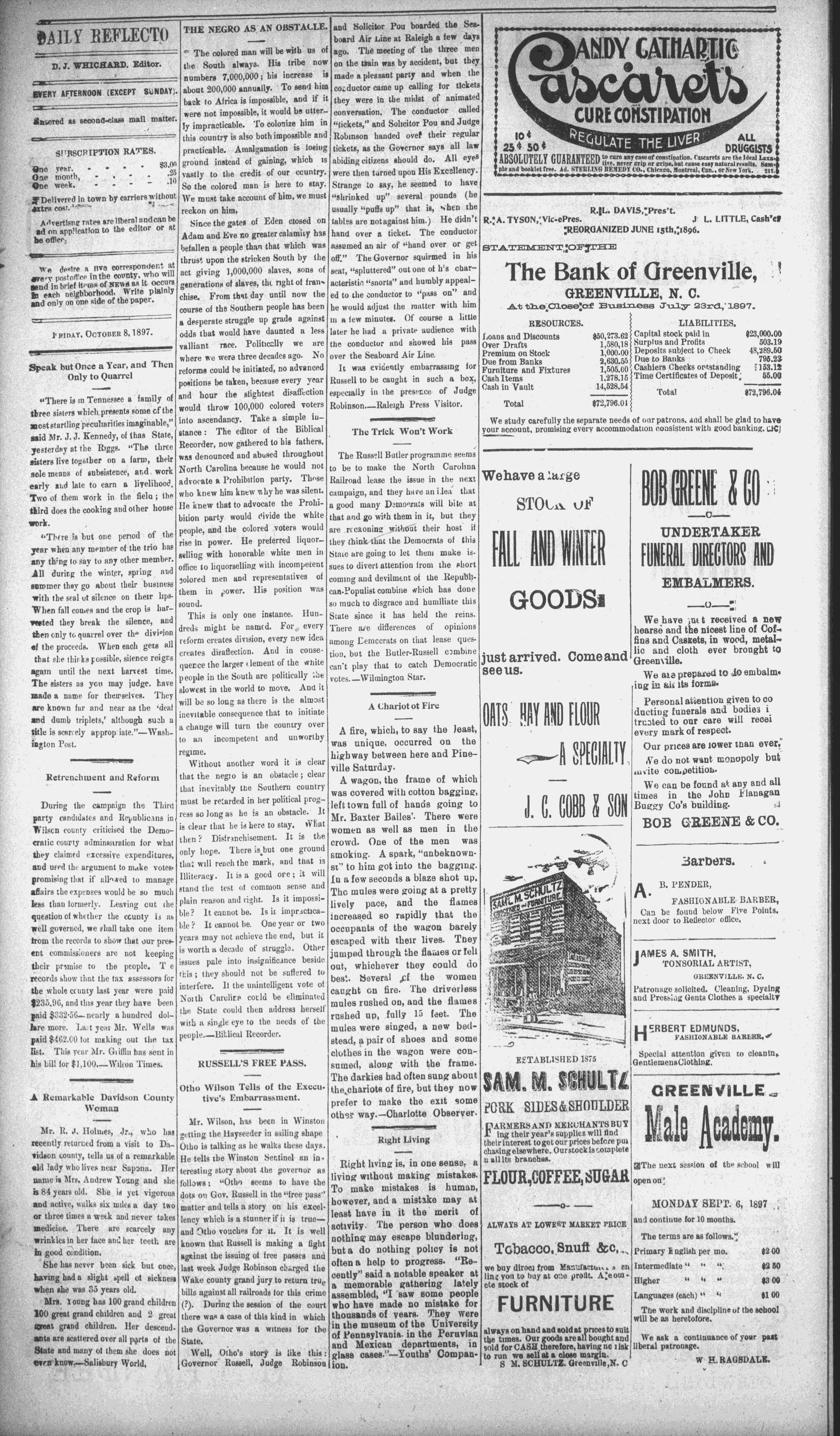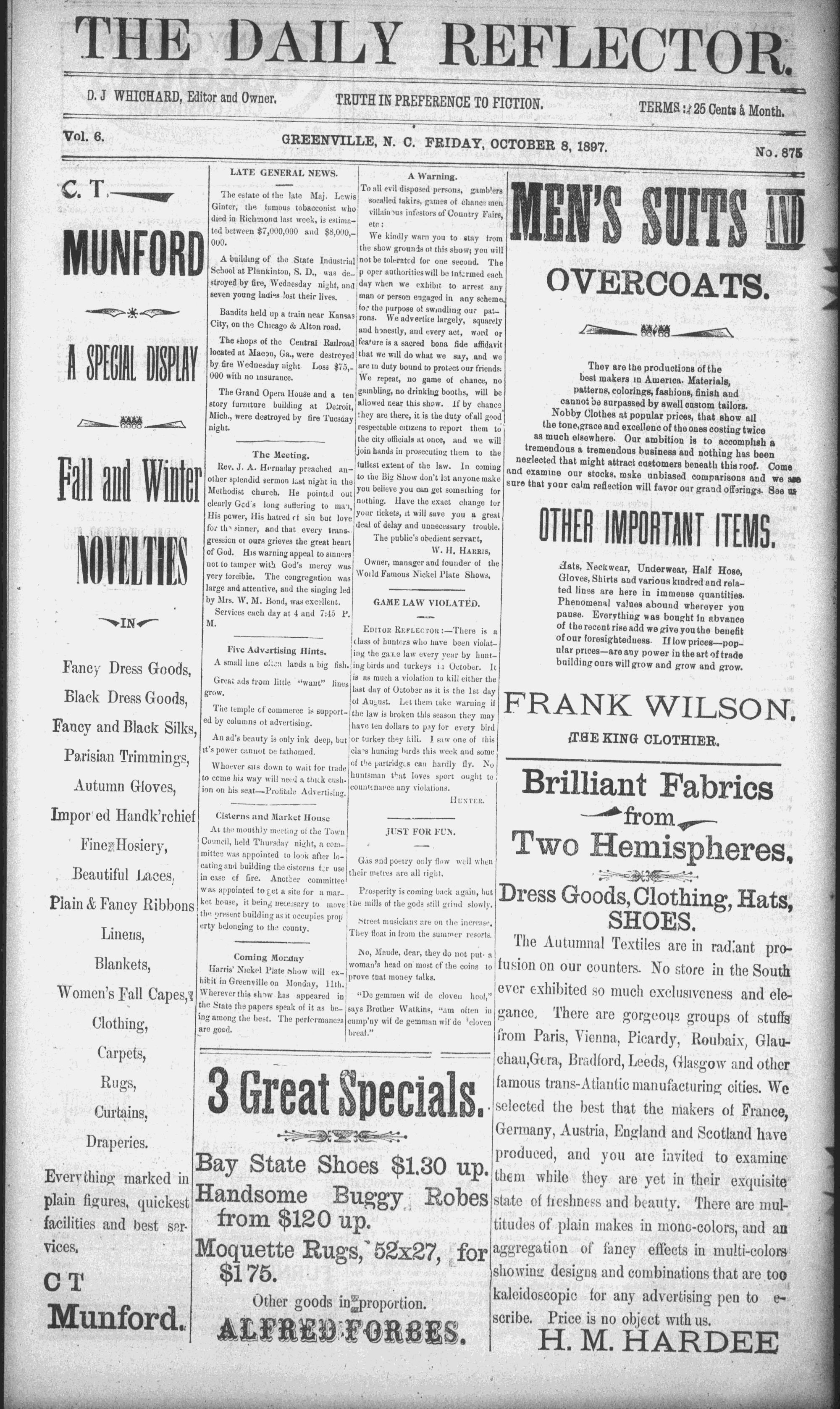 Vol. 6. GREENVILLE, N. C. FRIDAY, OCTOBER 8, 1897 No. 875