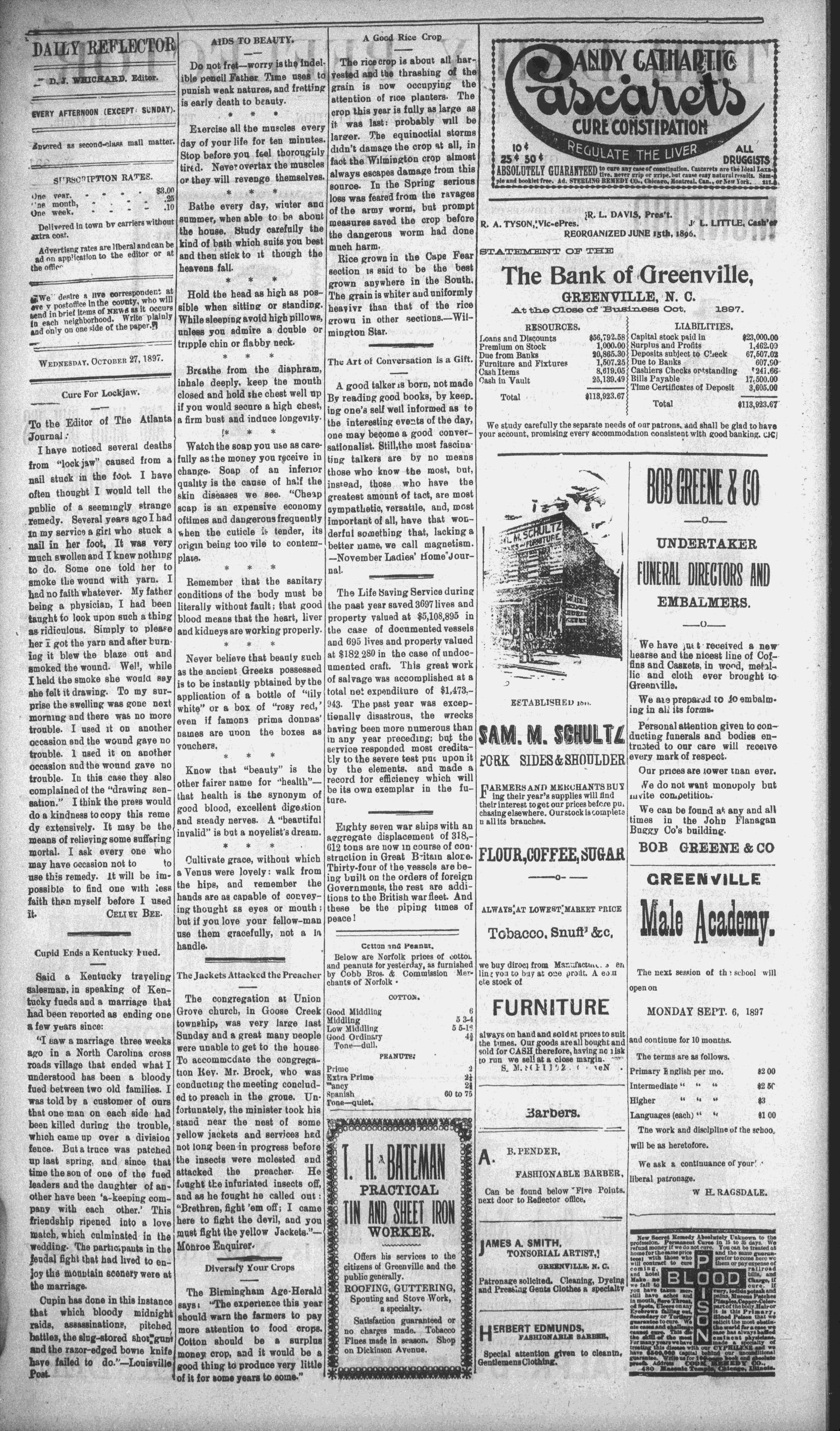 GREENVILLE, N. C. WEDNESDAY, OCTOBER 27, 1897. No. 801