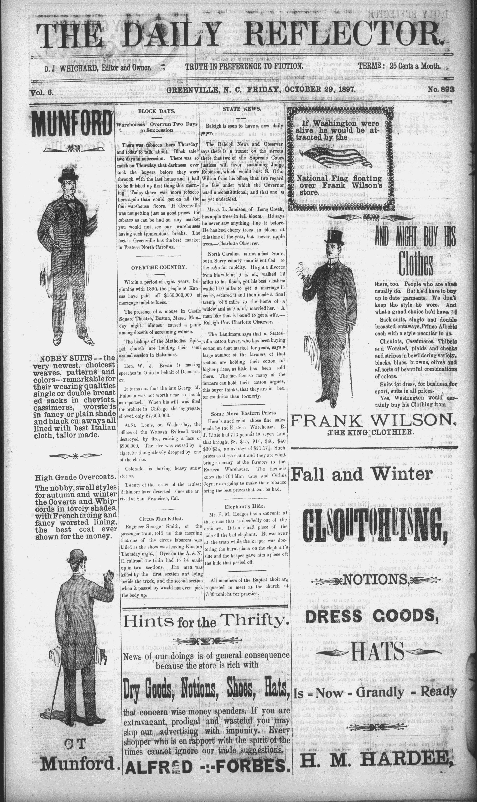 GREENVILLE, N. C. FRIDAY, OCTOBER 29, 1897. No. 893