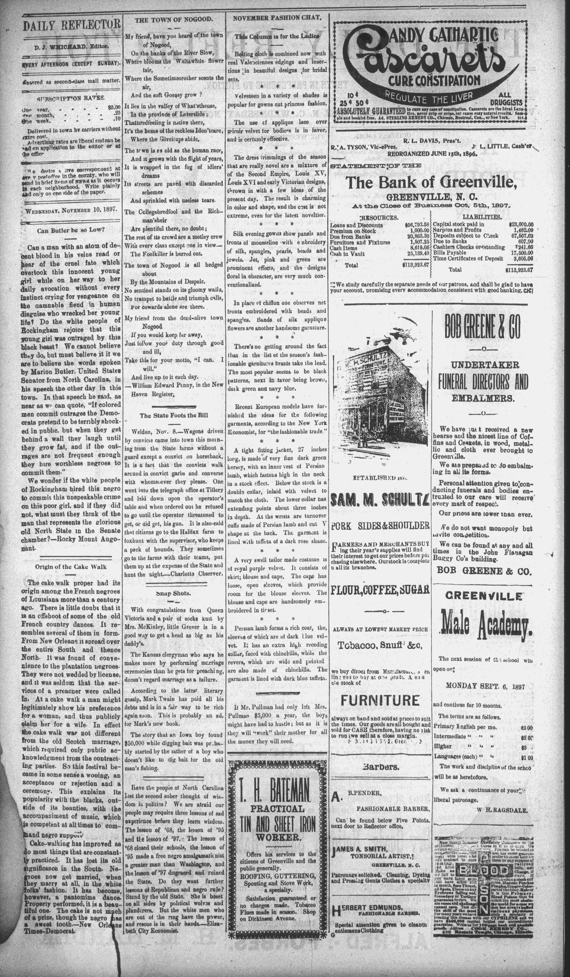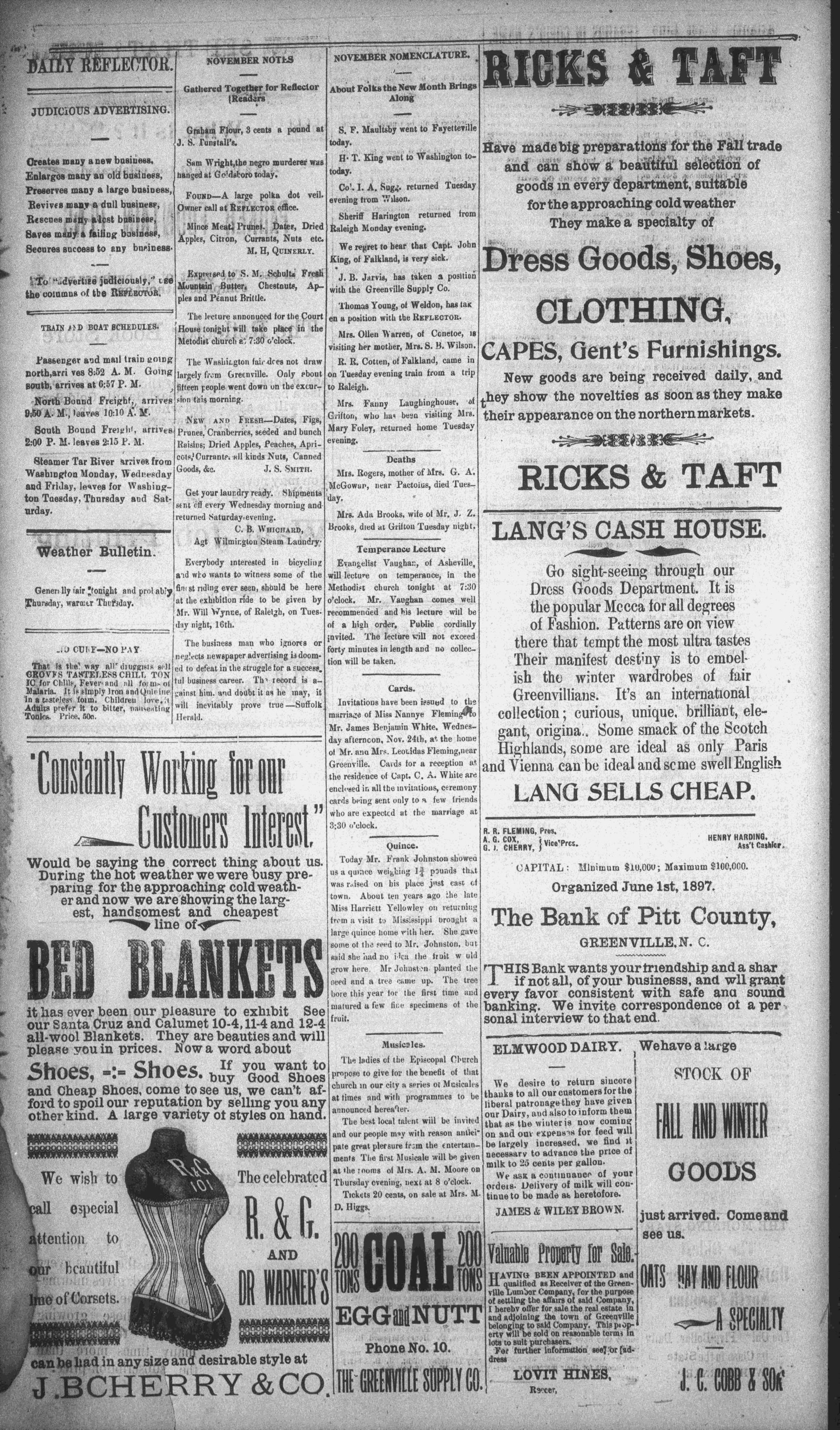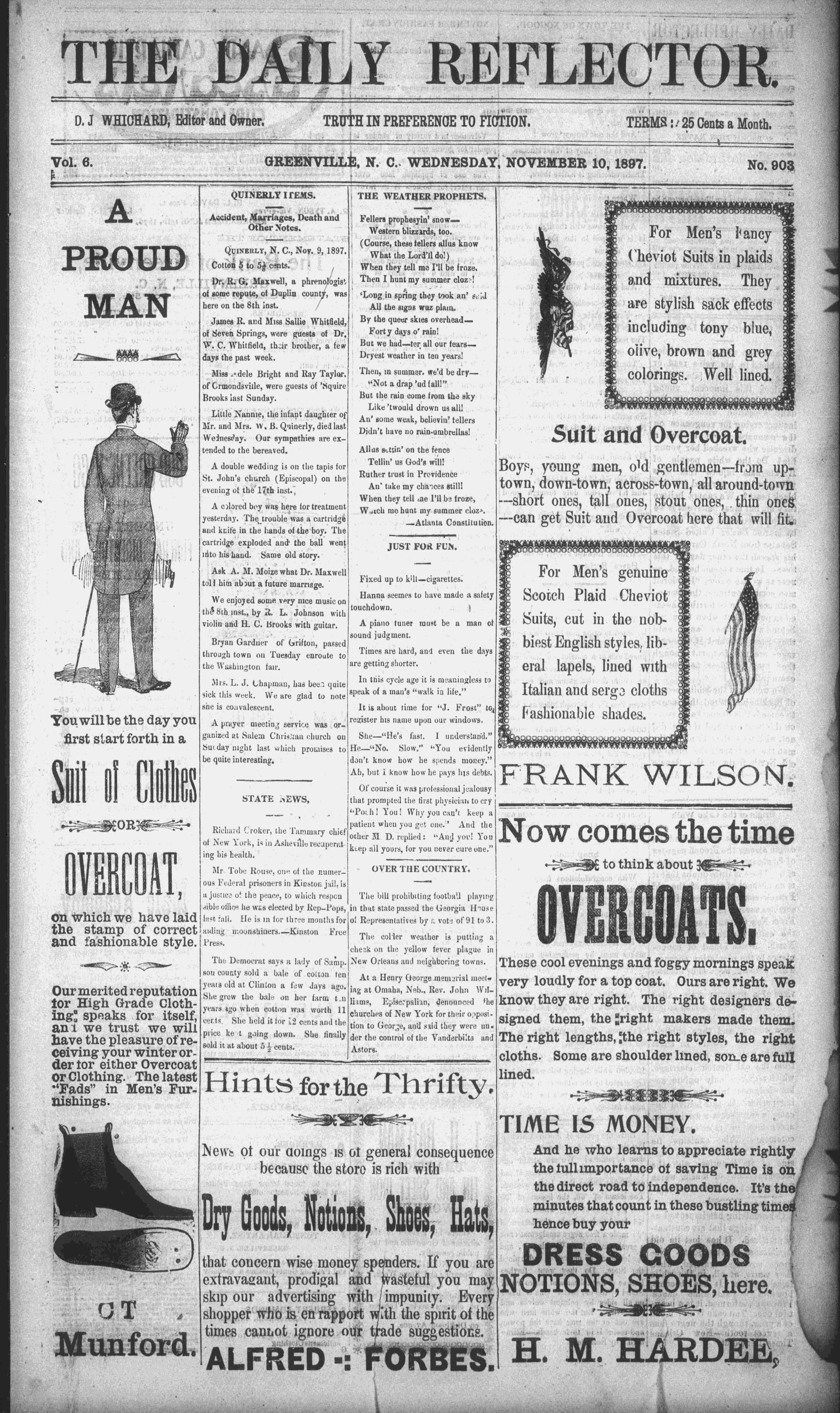 Vol. 6. GREENVILLE, N. C.. WEDNESDAY, NOVEMBER 10, 1897. No. 908